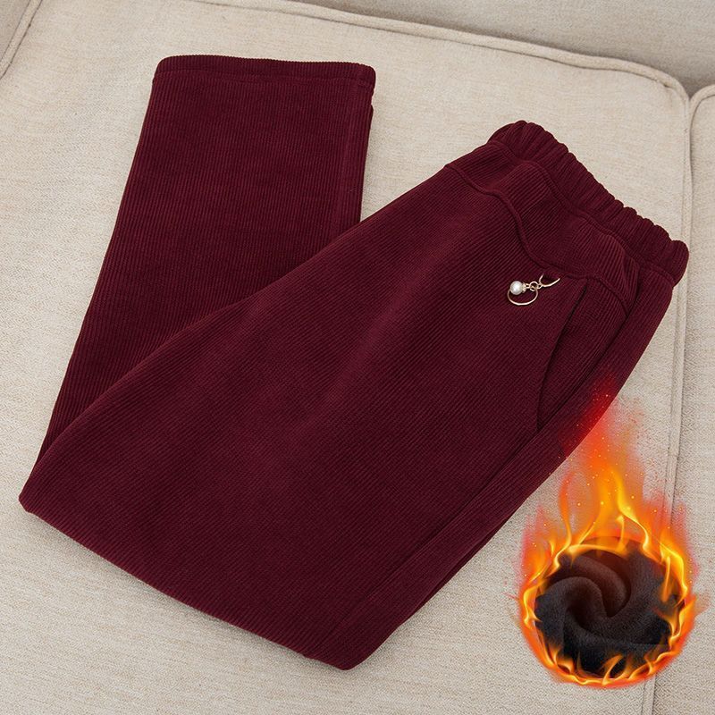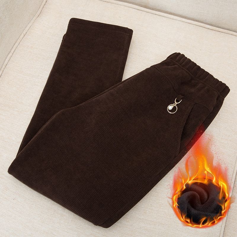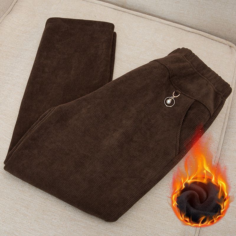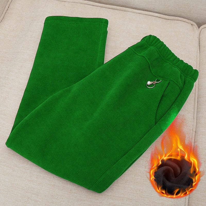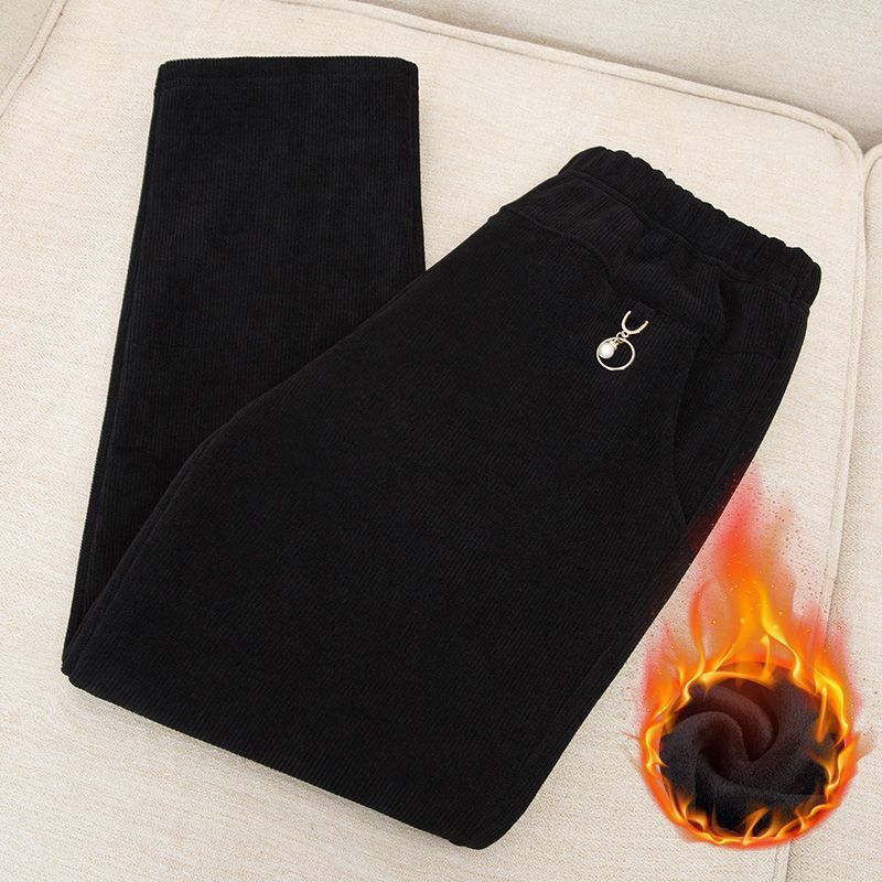 autumn and winter mom new plus-sized plus size corduroy pants cotton-padded trousers fleece-lined thick elderly outer wear pants