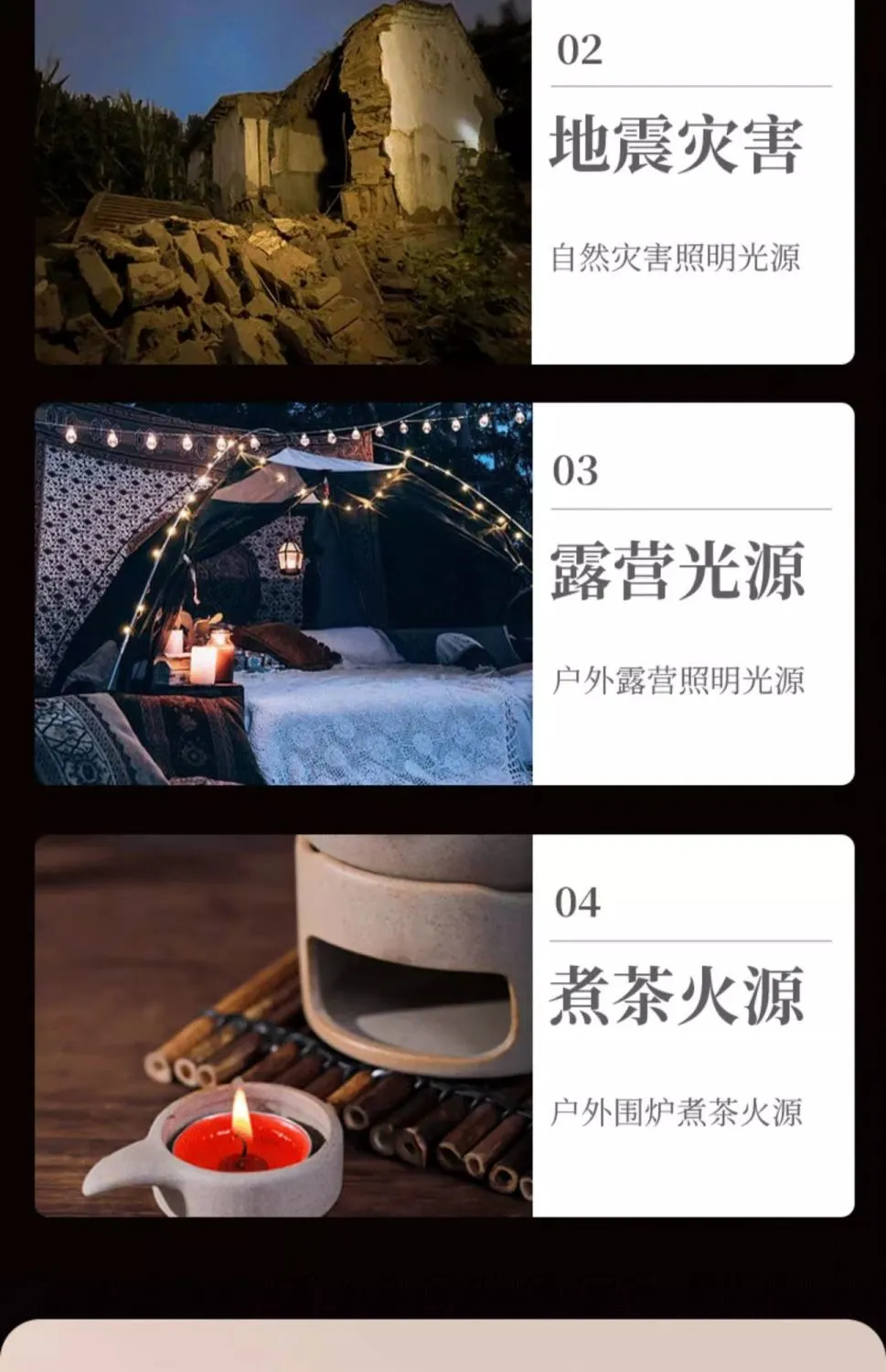 | [gold pewter 3 pack] emergency disaster prevention candles | CN¥ 21.85 | 99999 piece available |
