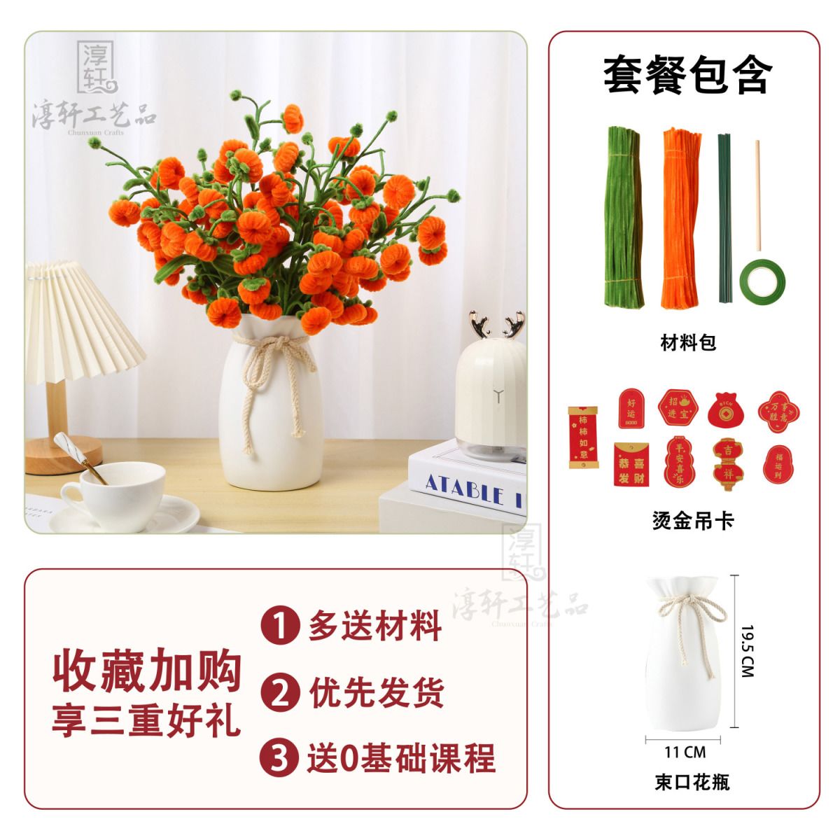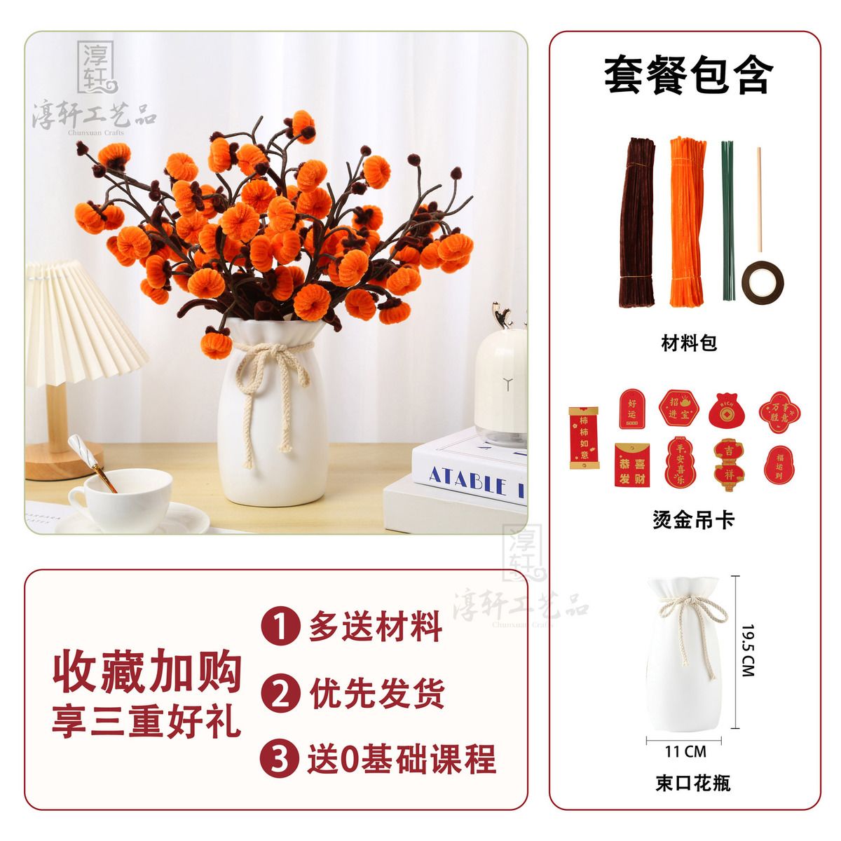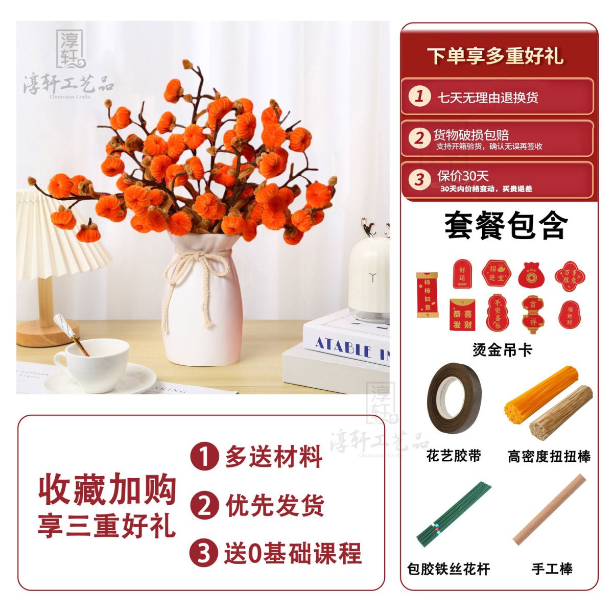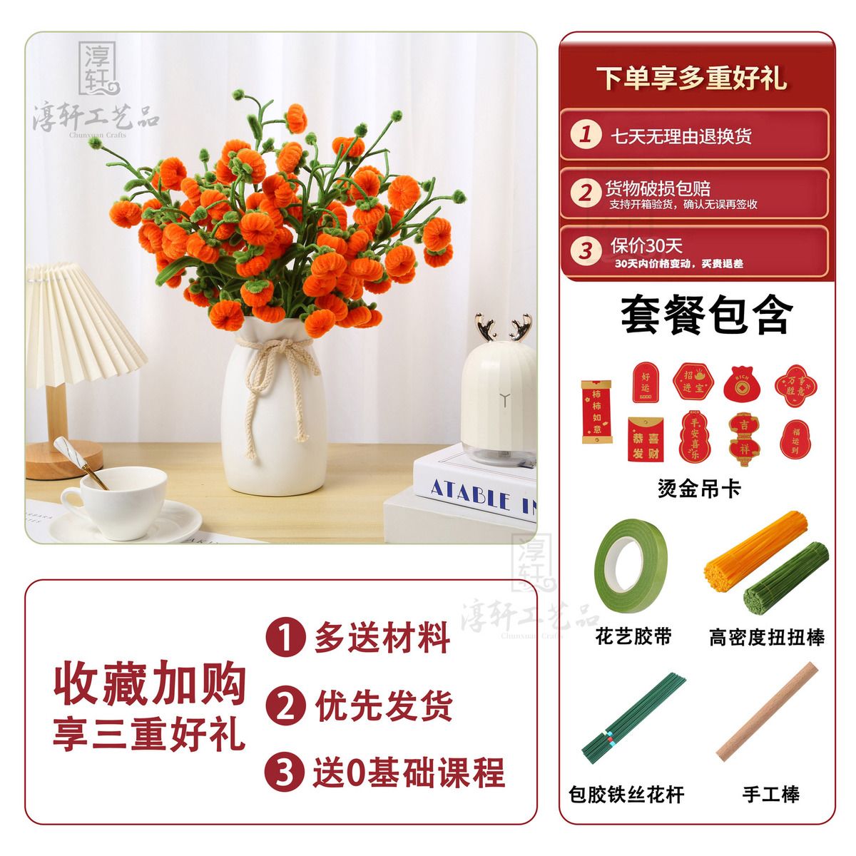 | 8 pieces and 48 pieces (bronzing hanging card + tape + flower stem + handmade sticks) | ¥32.5 | 99999 piece available |