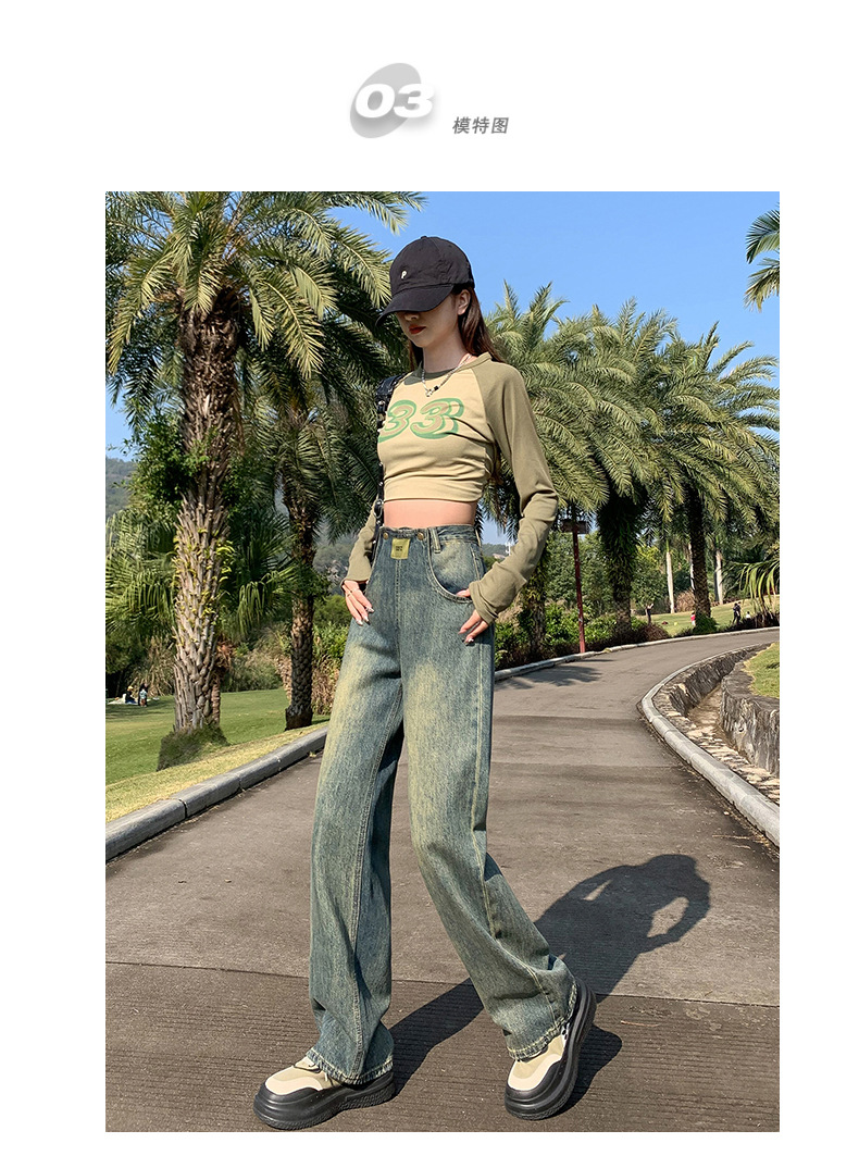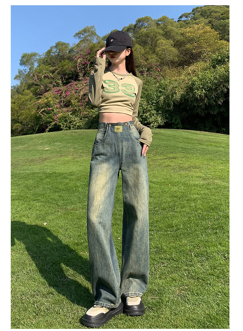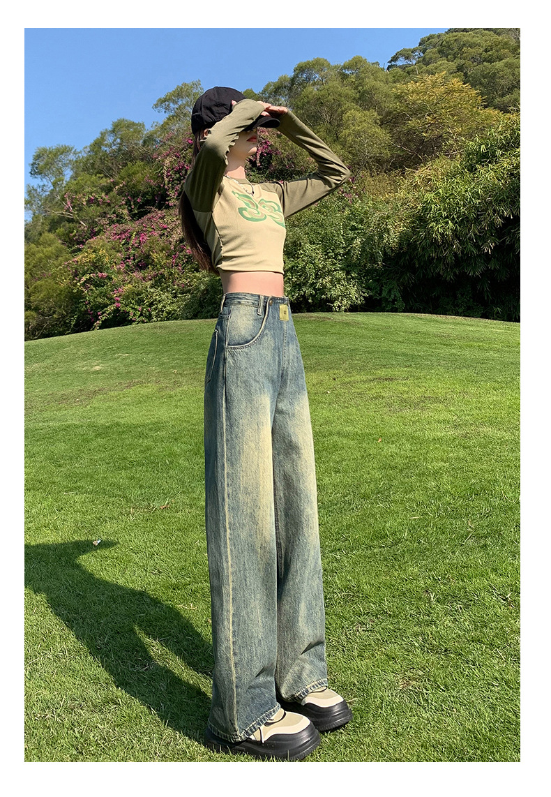 jiajun xintang women's retro wide leg high waist jeans women's spring american high street slimming hot girl slippers