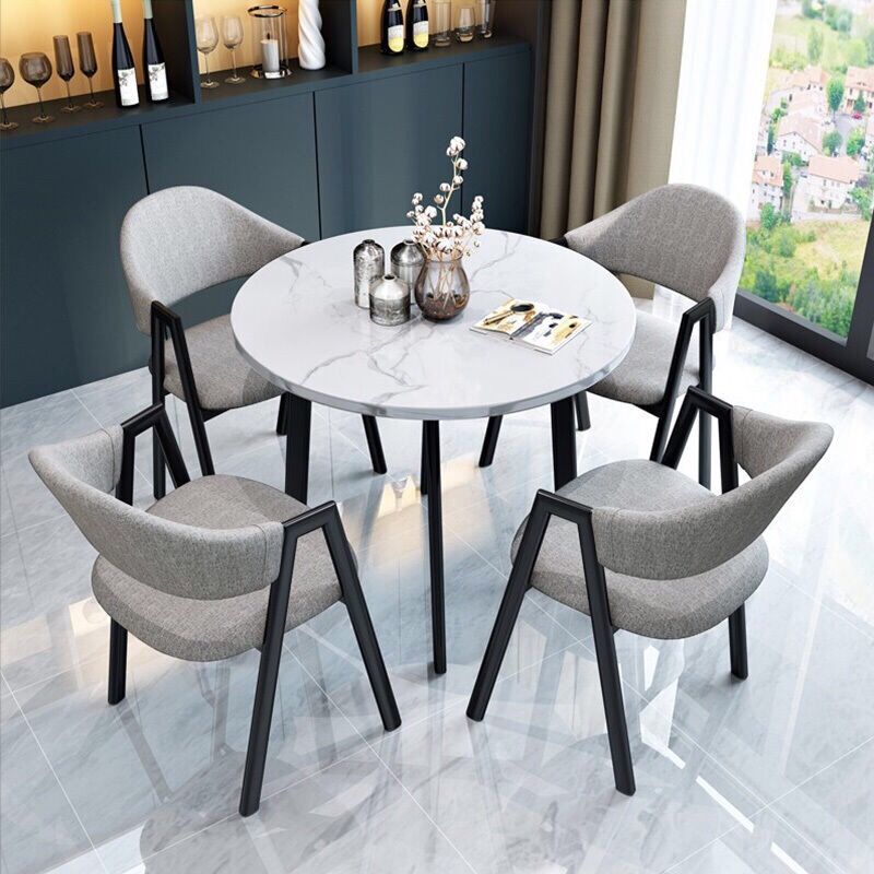| imitation white marble round table + dark gray leather chair | CN¥ 500.69 | 99999 piece available |