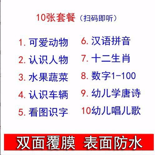 | kindergarten learning silent hanging chart 10 sheets [send tape]] | CN¥ 11.97 | 99999 piece available |