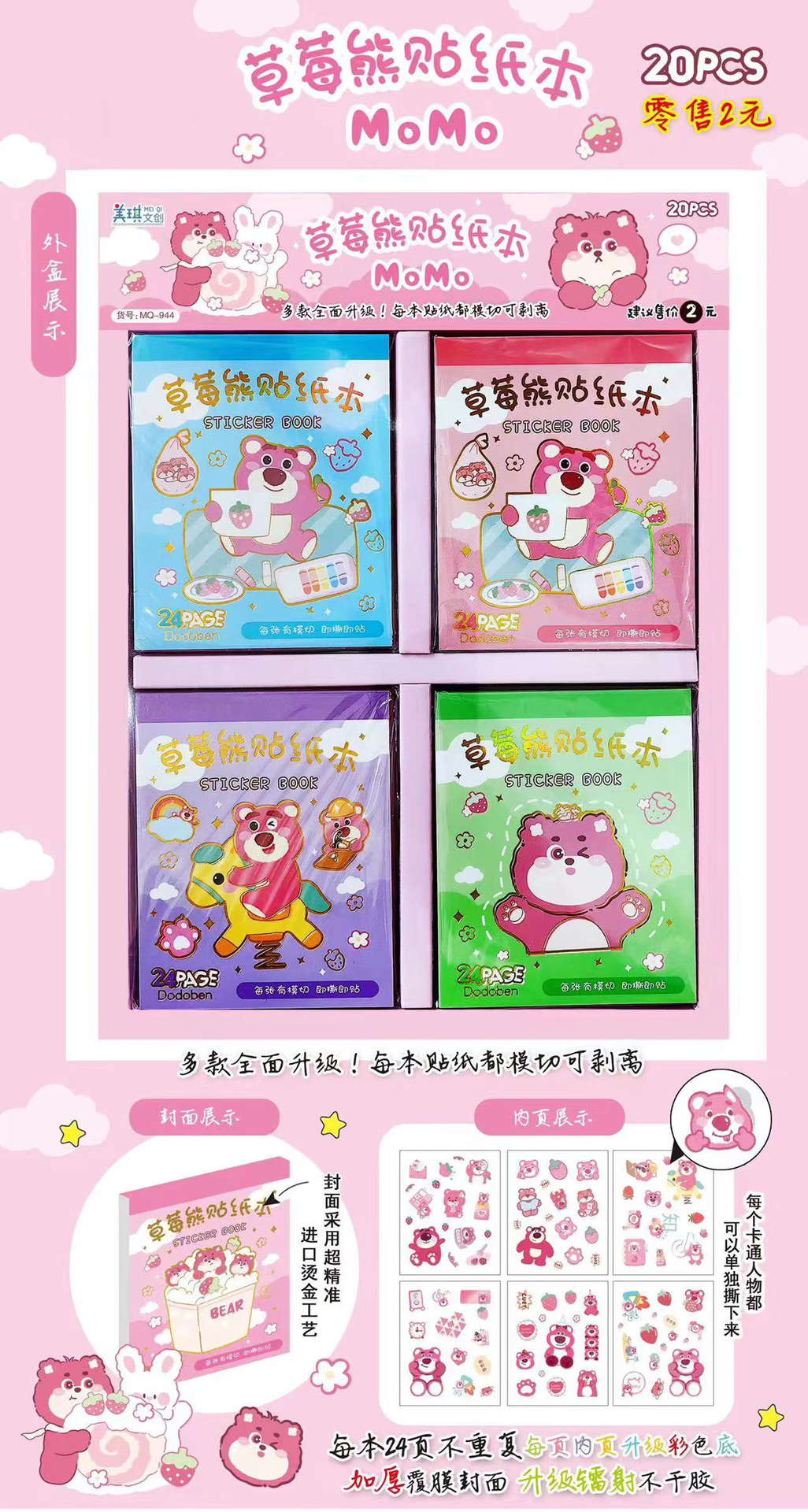 hot stamping plate doudou book [strawberry bear] 24 sheets/book