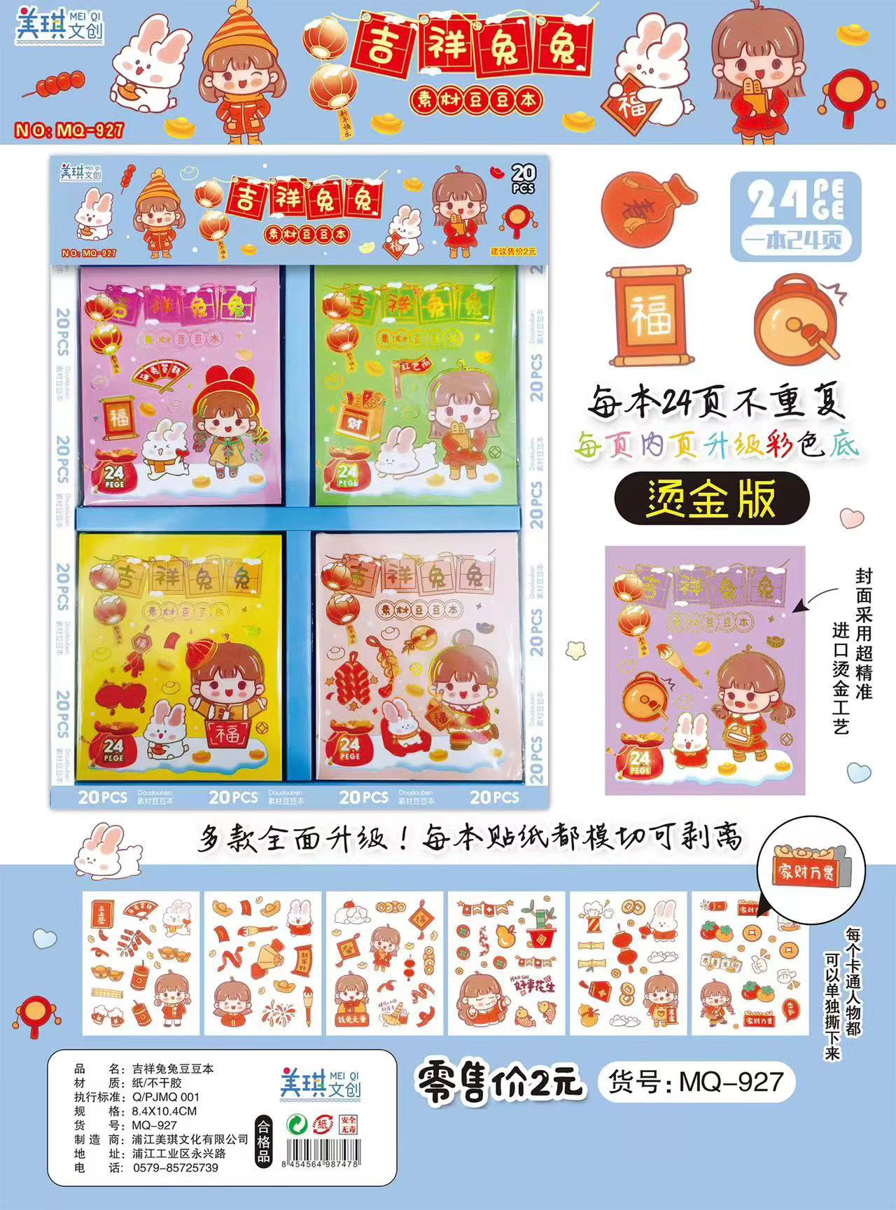 hot stamping plate doudou book [auspicious rabbit] 24 sheets/book