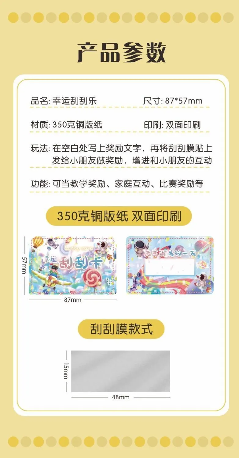 | 300 pieces [150 cards +150 films] pen + scraper | CN¥ 12.3 | 99999 piece available |