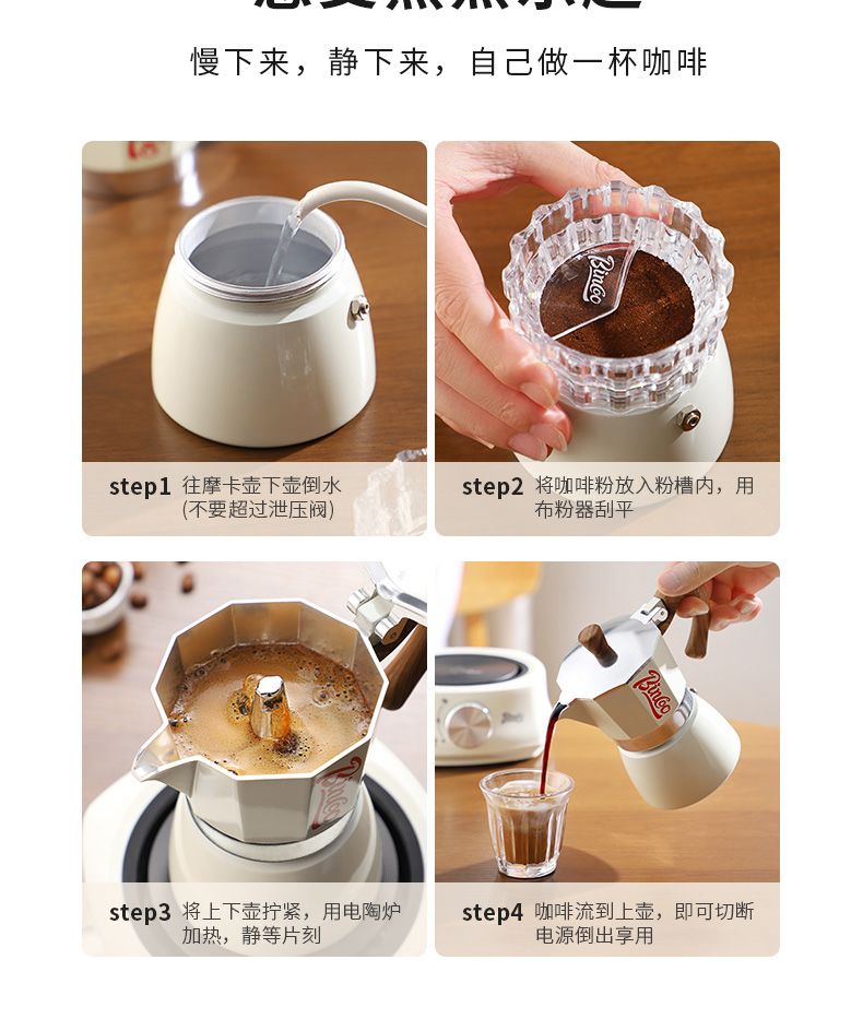 | moka pot + filter paper + heat proof mat + coffee distributor + electrothermal furnace + bean spoon | CN¥ 205.61 | 99999 piece available |