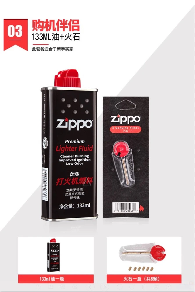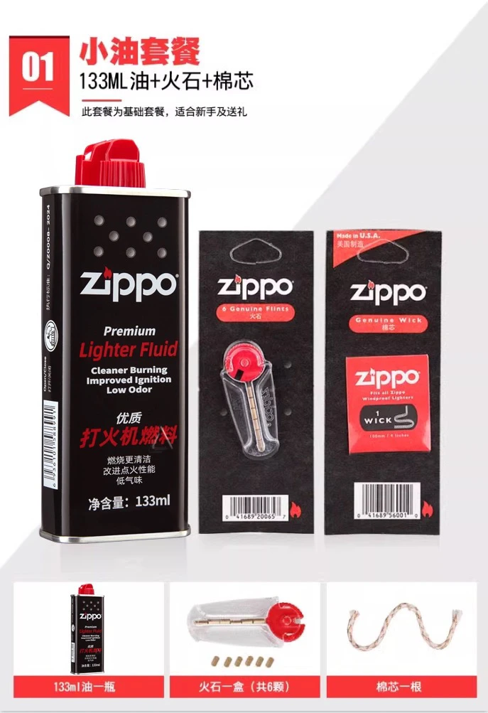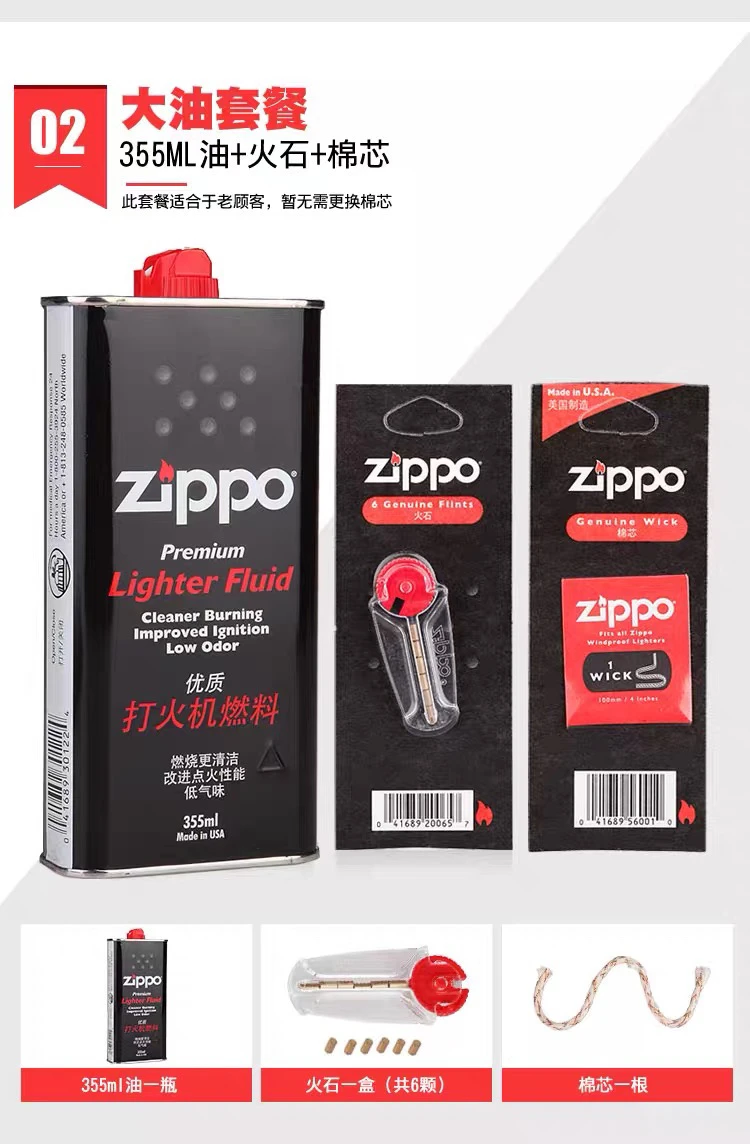 | chinese version anti-counterfeiting large oil + small oil + flint * 2 + cotton core one-year ration | CN¥ 108.47 | 99999 piece available |