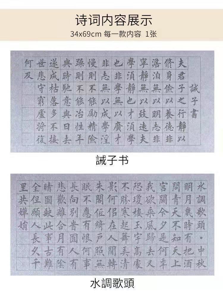 | 7-piece set [water writing cloth 5 + writing brush + water dish]] | CN¥ 10.54 | 99999 piece available |