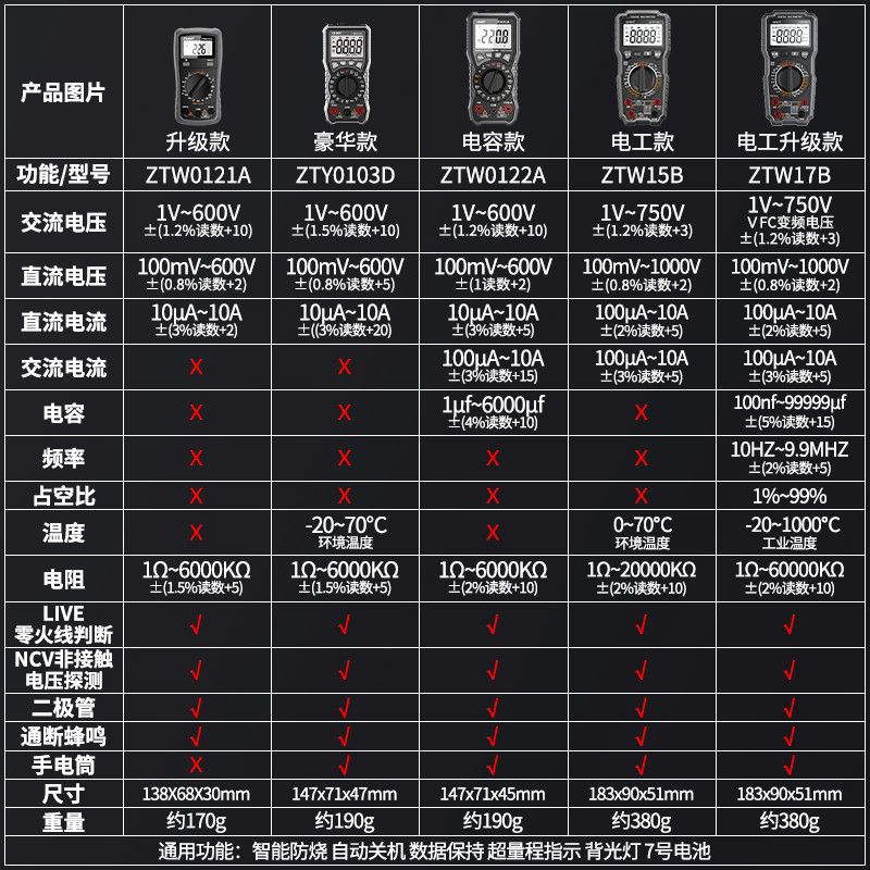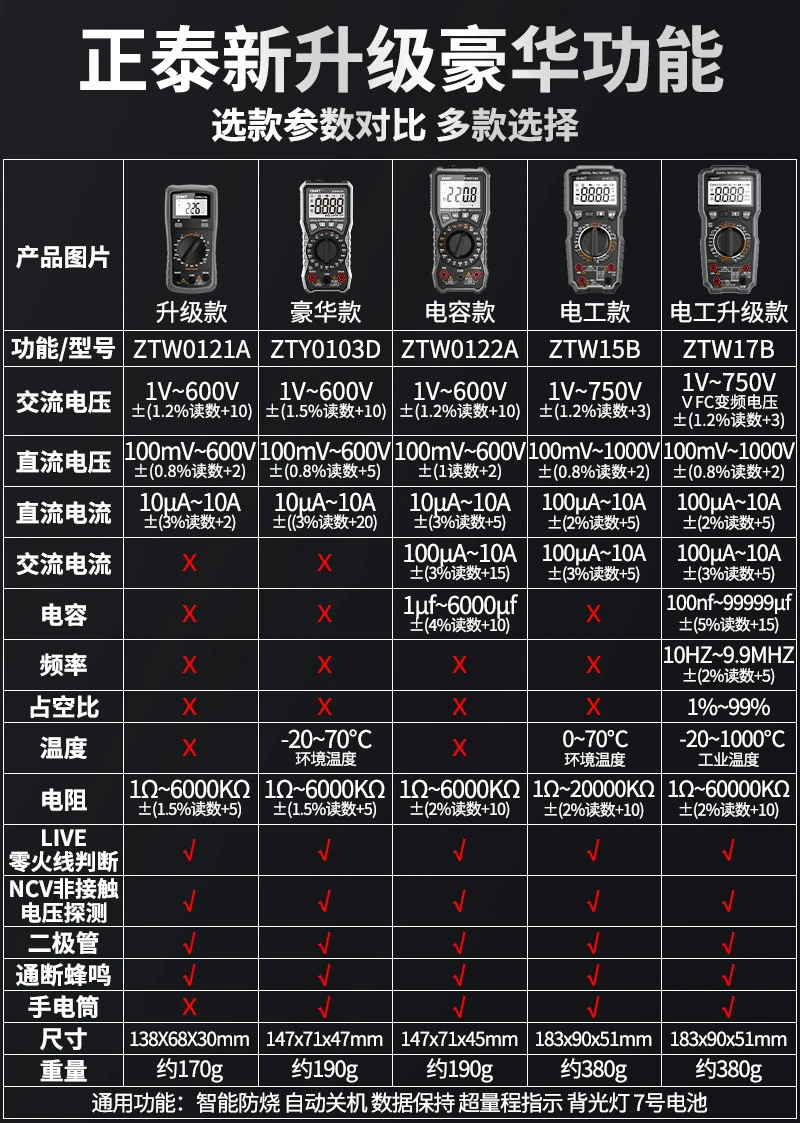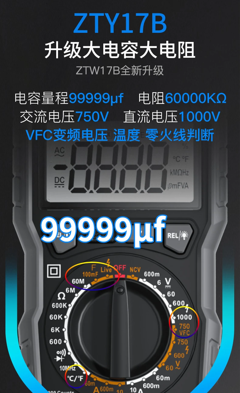| zhengtai multi-function upgrade multimeter [temperature/frequency conversion voltage/capacitor]] | CN¥ 327.2 | 99999 piece available |
