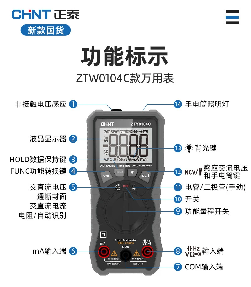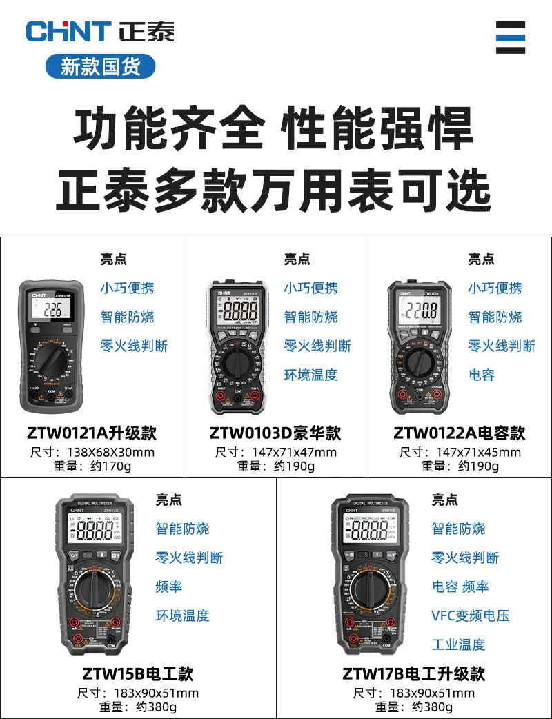 | zhengtai intelligent style multimeter [intelligent anti-burn/zero fire line]] | CN¥ 129.56 | 99999 piece available |