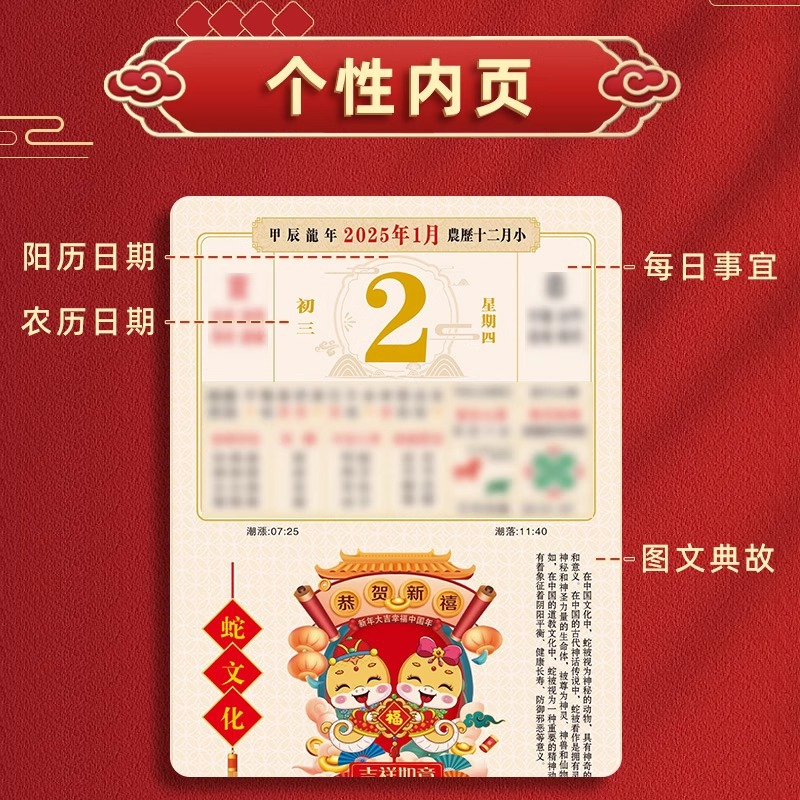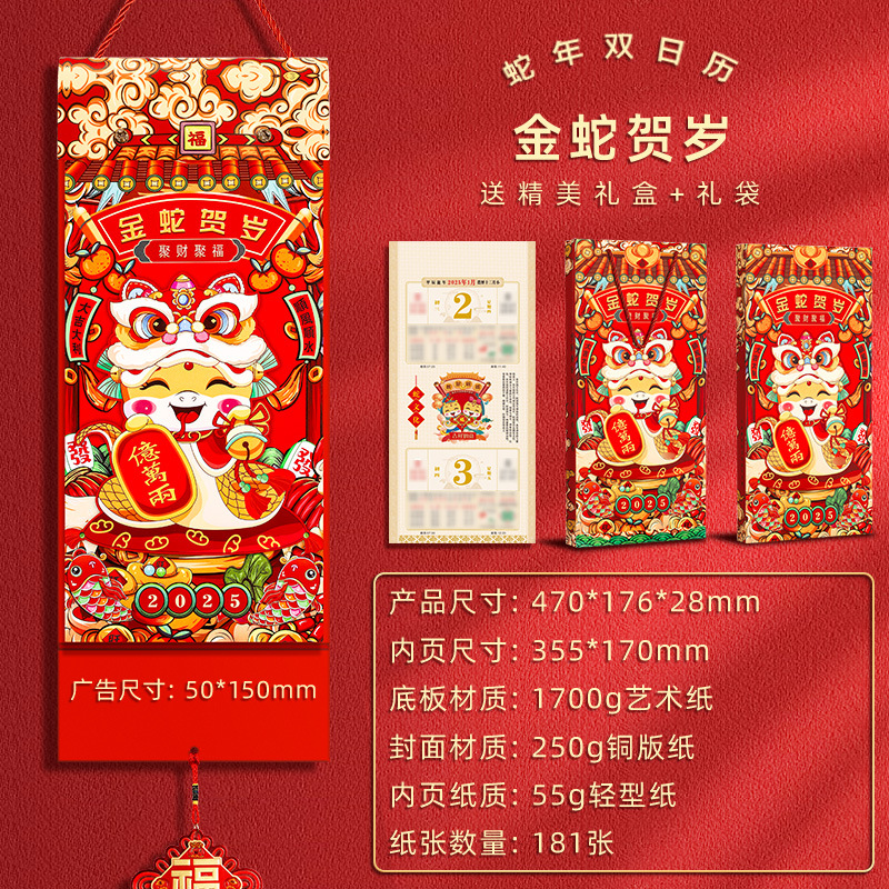 [large double calendar] gold snake new year (gift box for free gift bag)