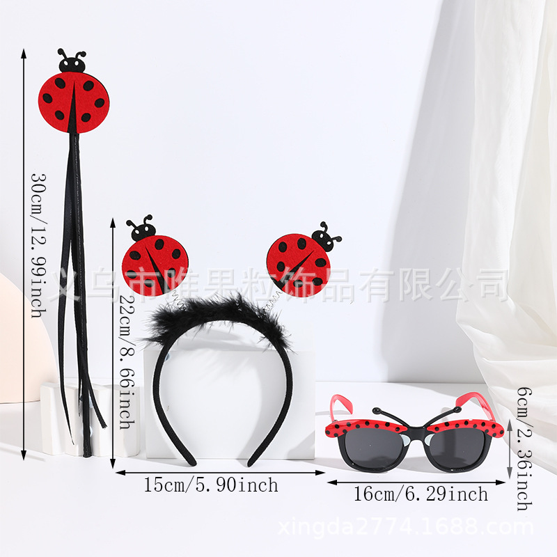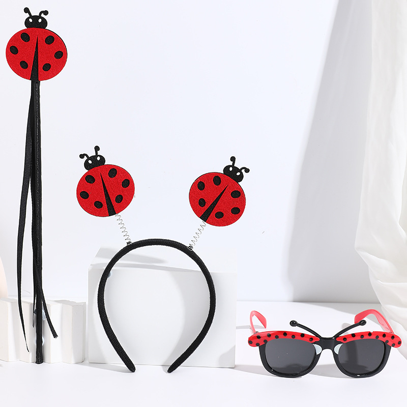 big red ladybug headband with feather + red glasses short tentacles + red ladybug magic stick