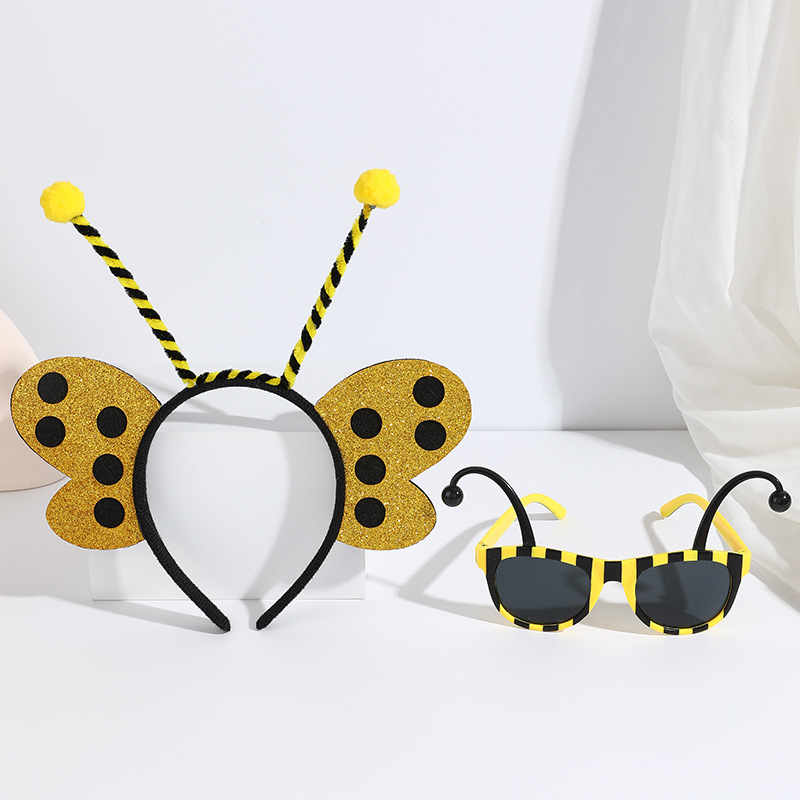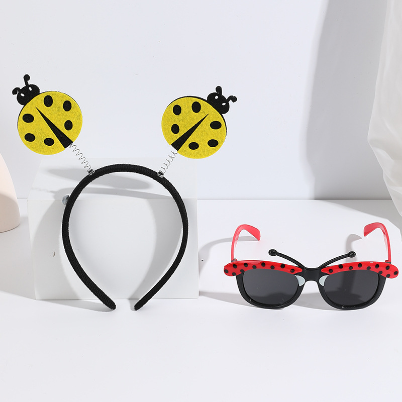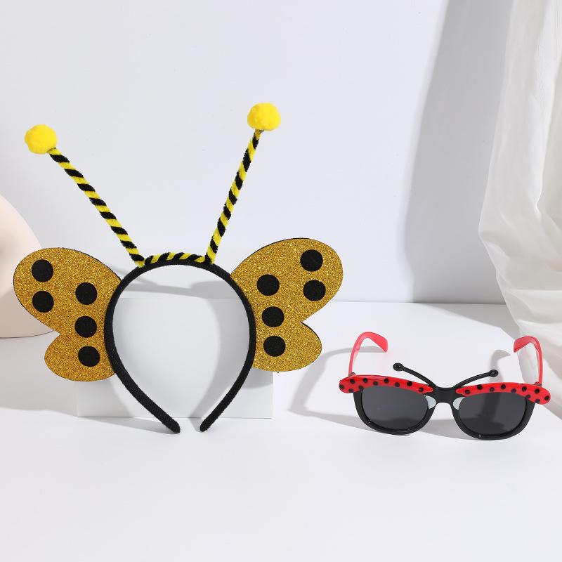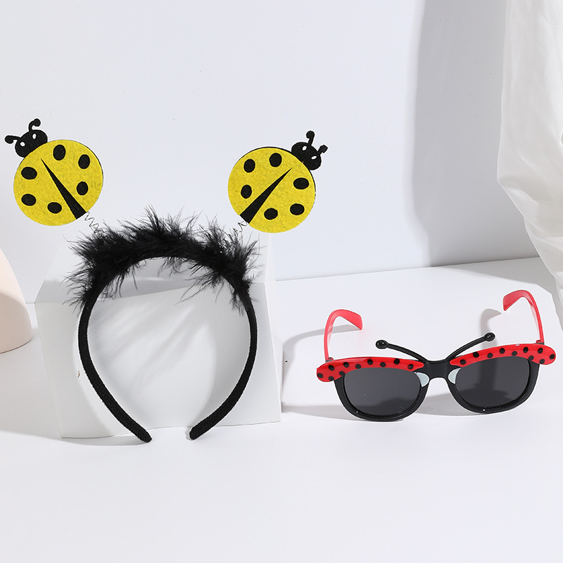 yellow ladybug headband with feather + red glasses short tentacles
