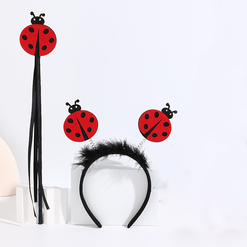 big red ladybug headband with feather + red ladybug magic stick