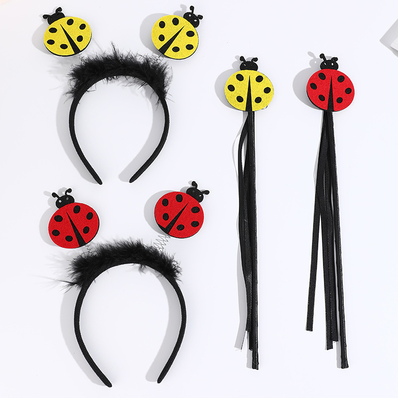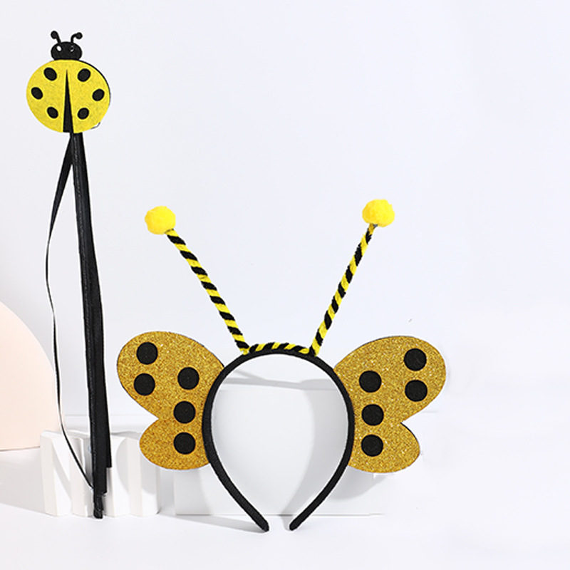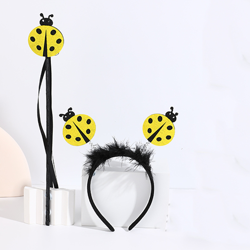 yellow ladybug headband with feather + yellow ladybug magic stick