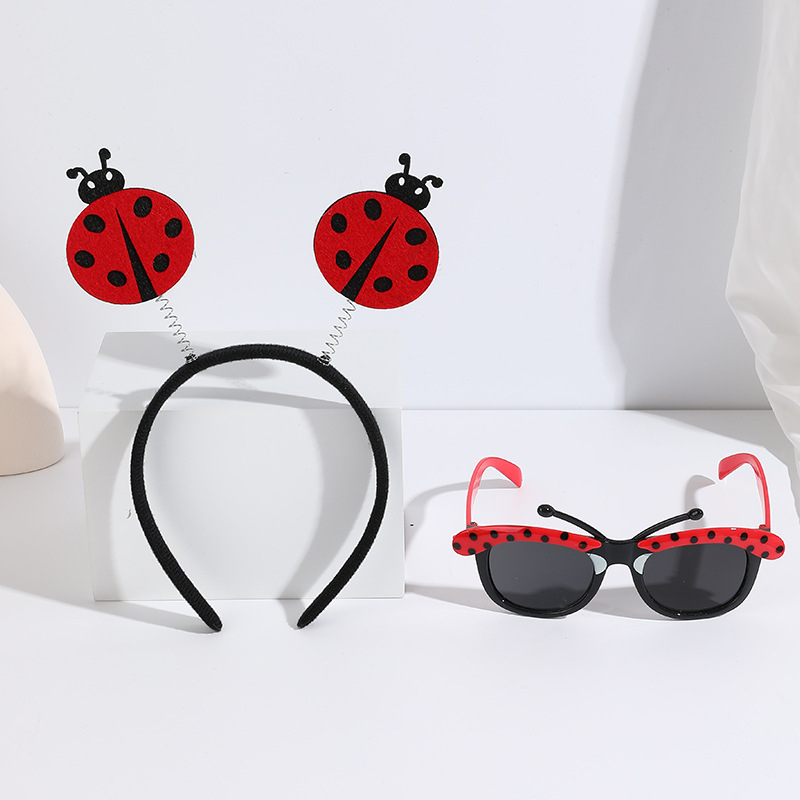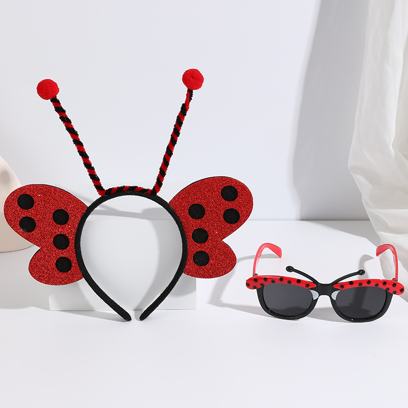big red ladybug headband with feather + red glasses short tentacles