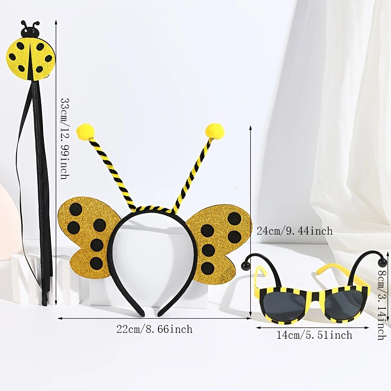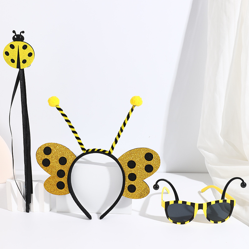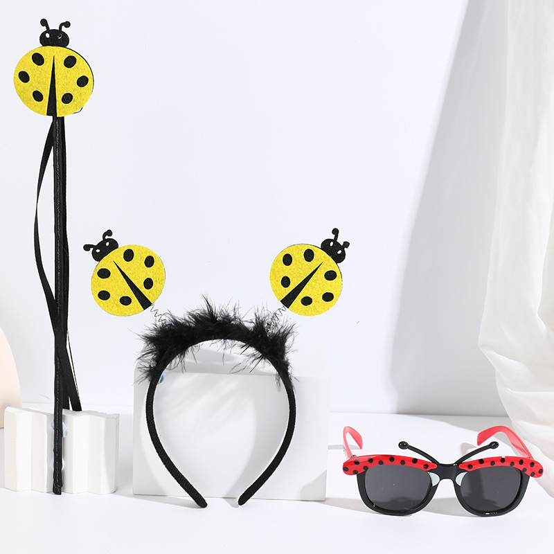 yellow ladybug headband with feather + red glasses short tentacles + yellow ladybug magic stick