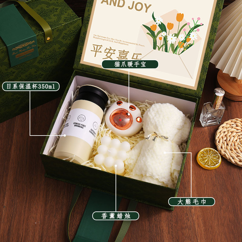 13. thermos cup + towel + aromatherapy candle