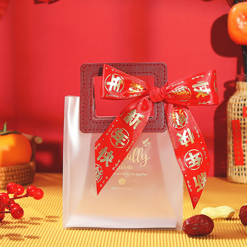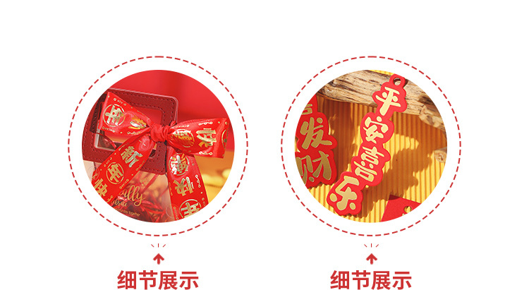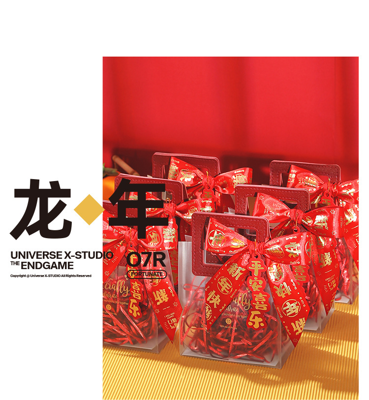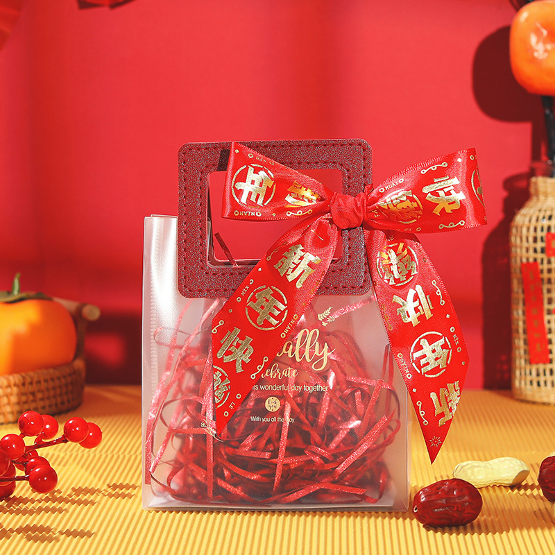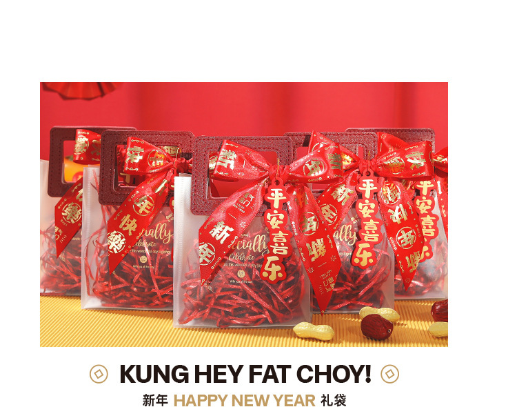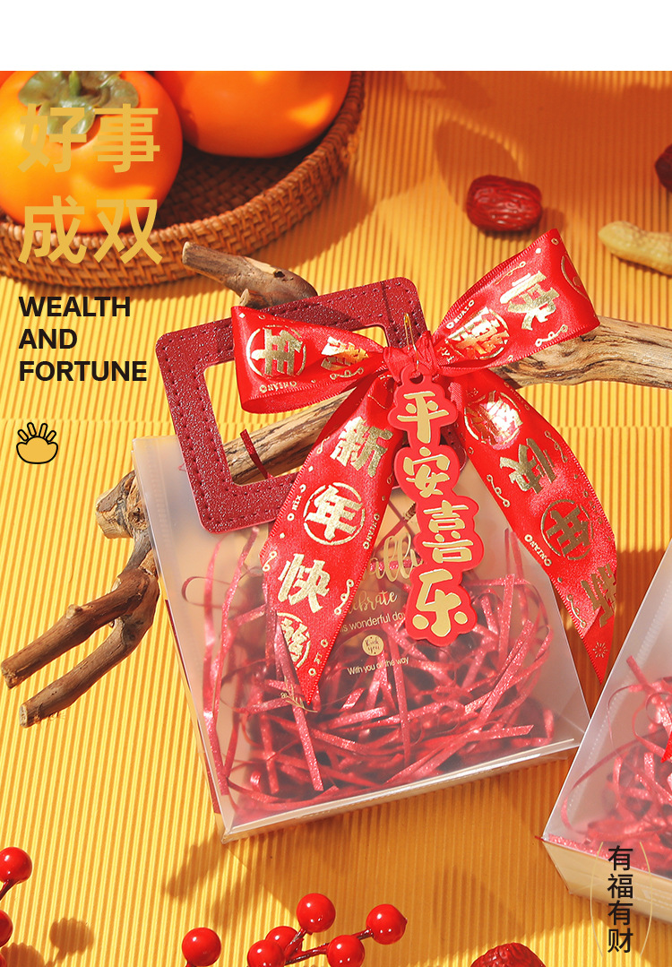new year ribbon + gift bag + ping an joy tag + raffia; small size (13.5*7 * 15cm)