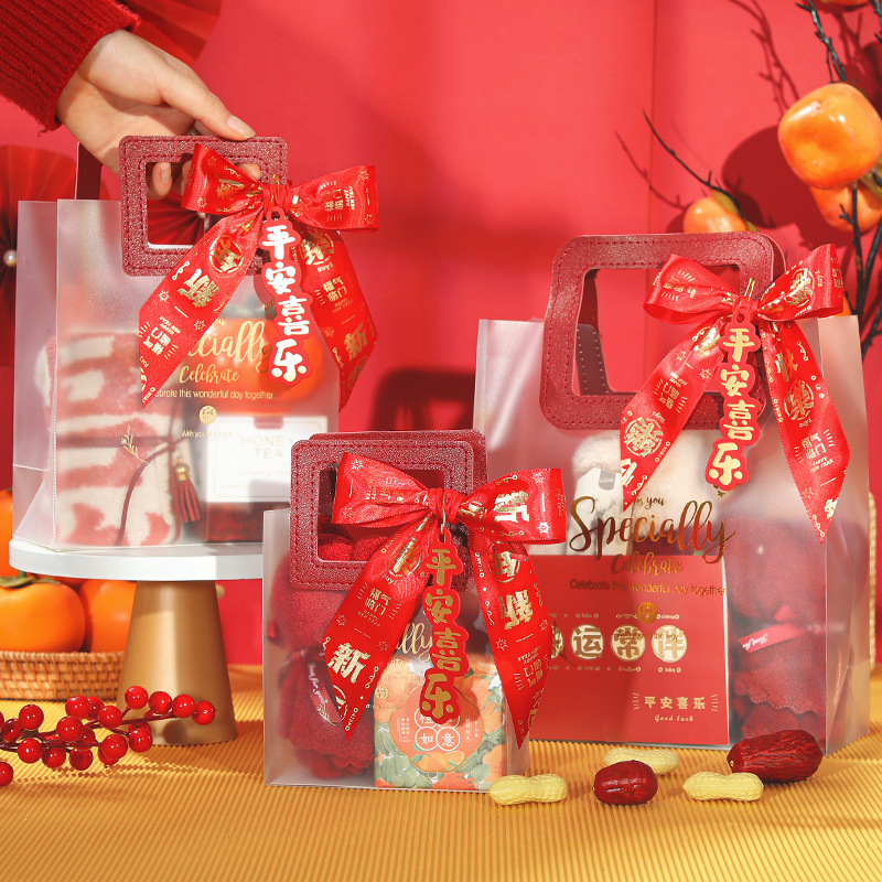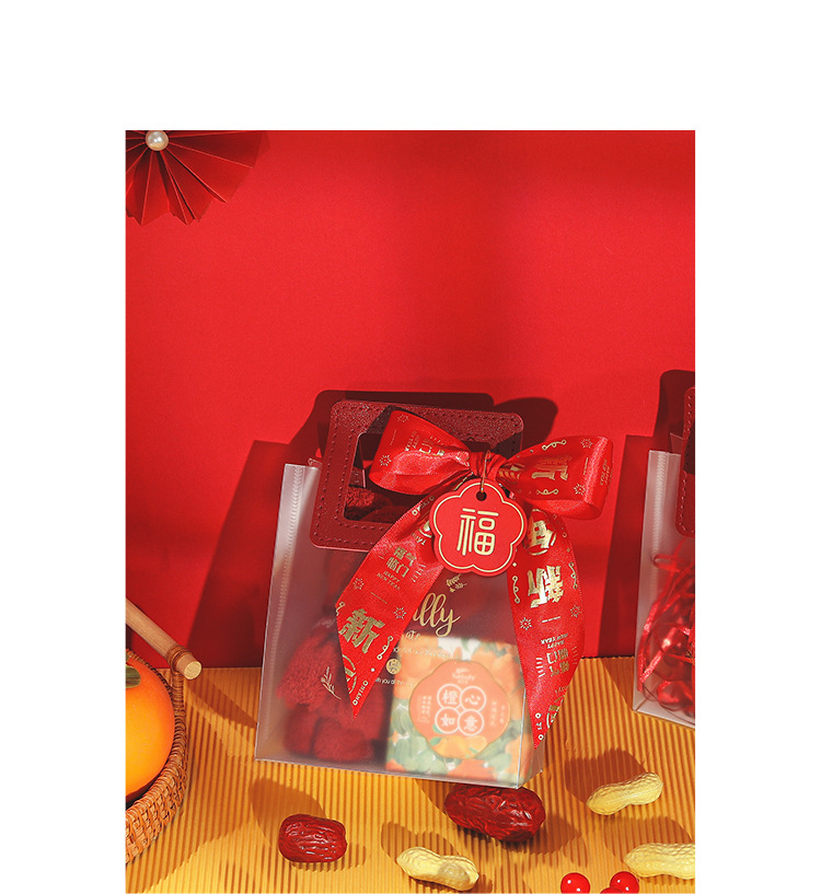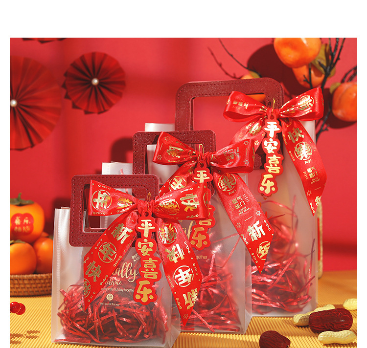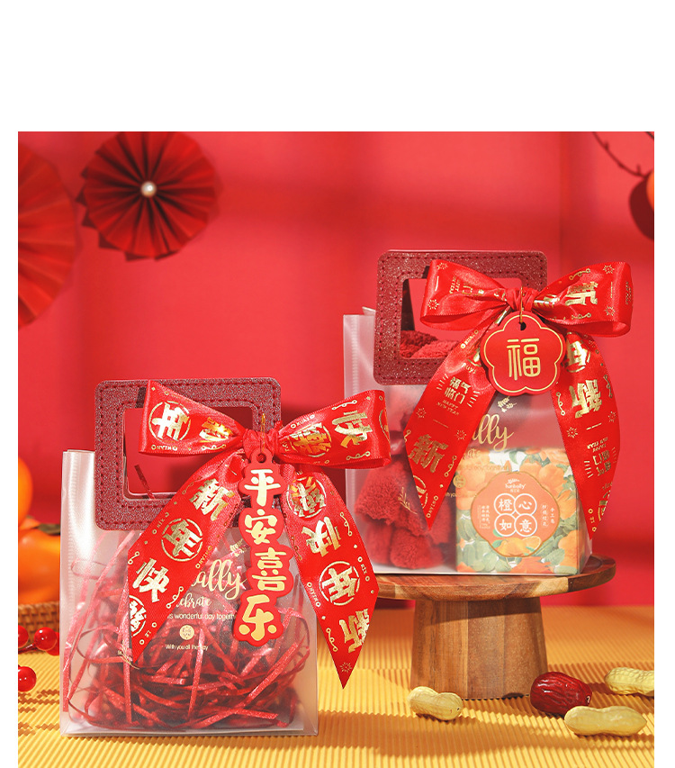new year ribbon + gift bag + ping an joy tag + raffia; large size (22*9 * 25cm)