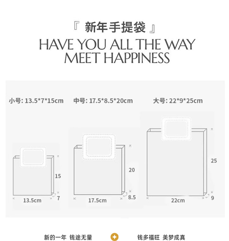 new year ribbon + gift bag + happy new year tag + raffia; small size (13.5*7 * 15cm)