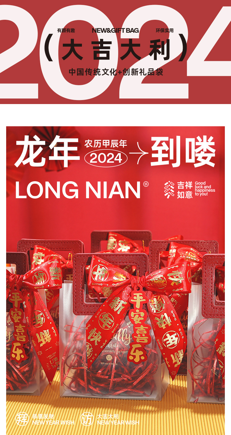 new year ribbon + gift bag + blessing tag + raffia; large size (22*9 * 25cm)