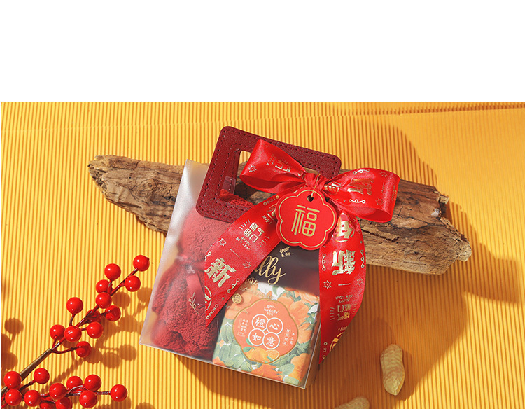 new year ribbon + gift bag + blessing tag + raffia; small size (13.5*7 * 15cm)