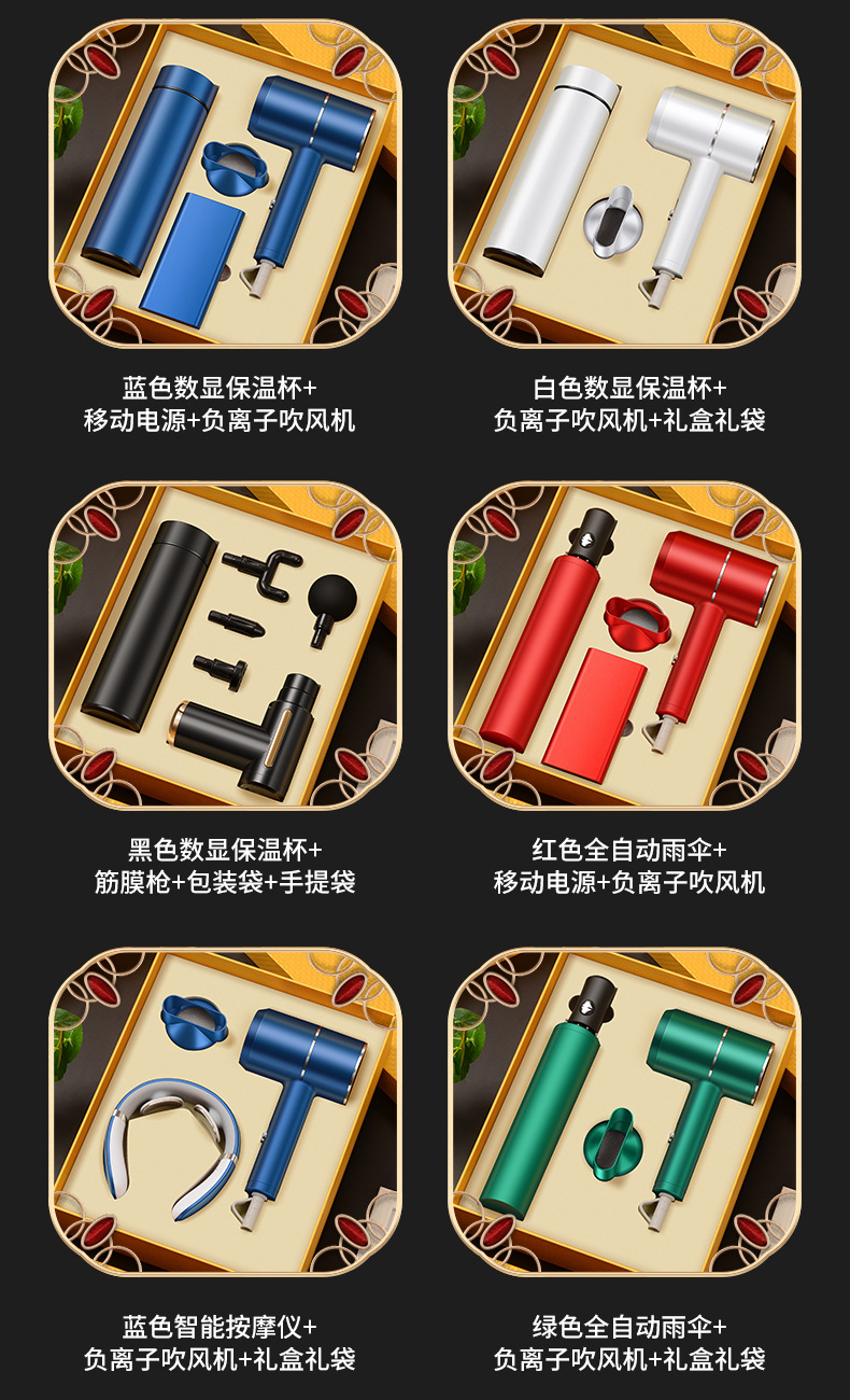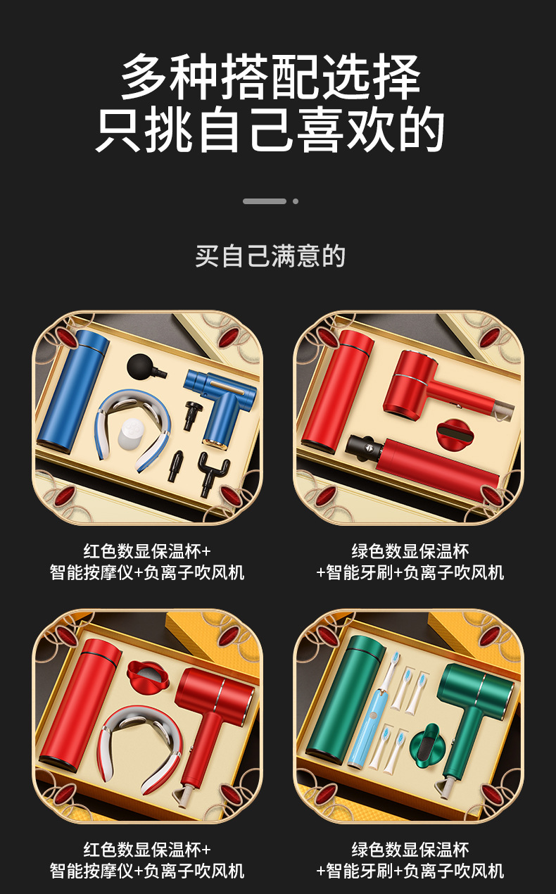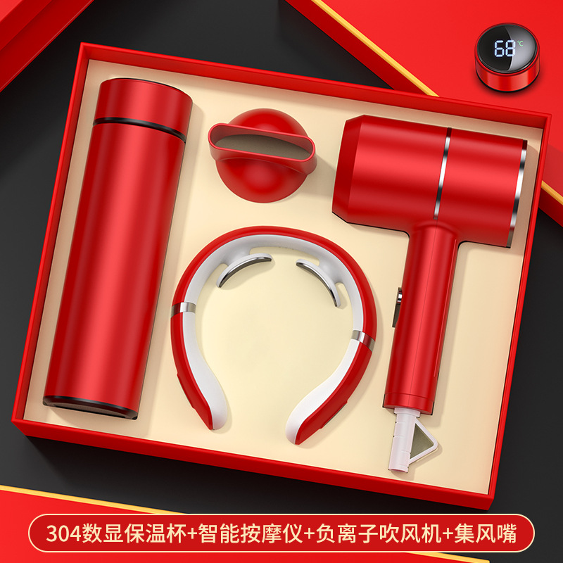 red digital display cup + massage instrument + hair dryer/gift box