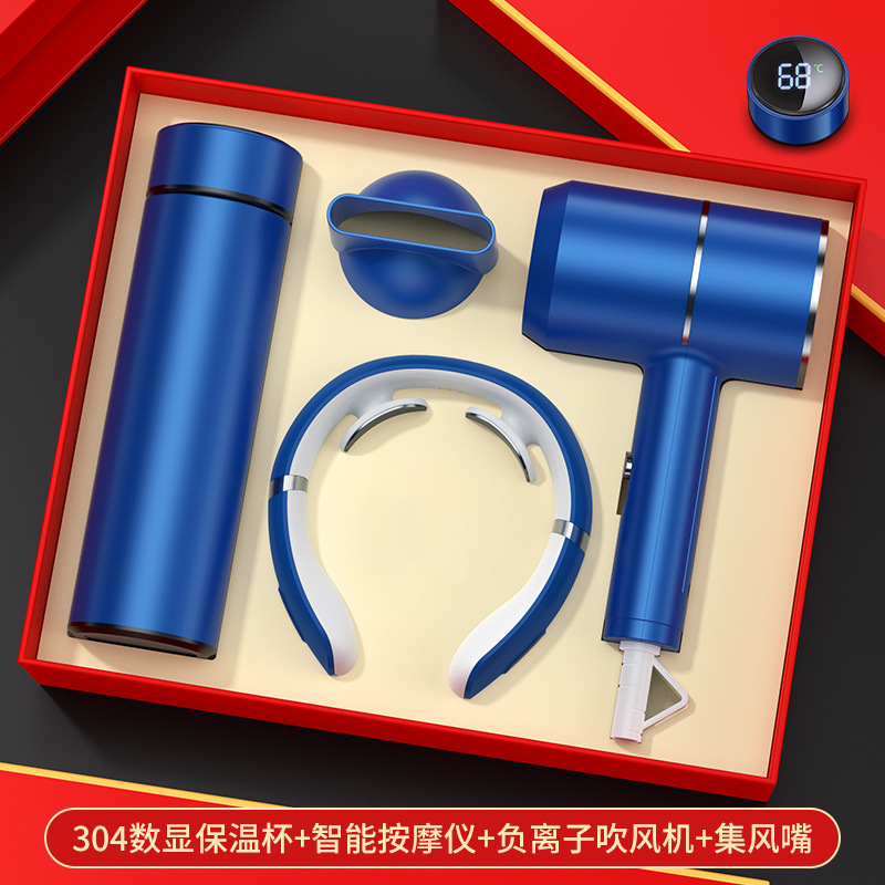blue digital display cup + massage instrument + hair dryer/gift box