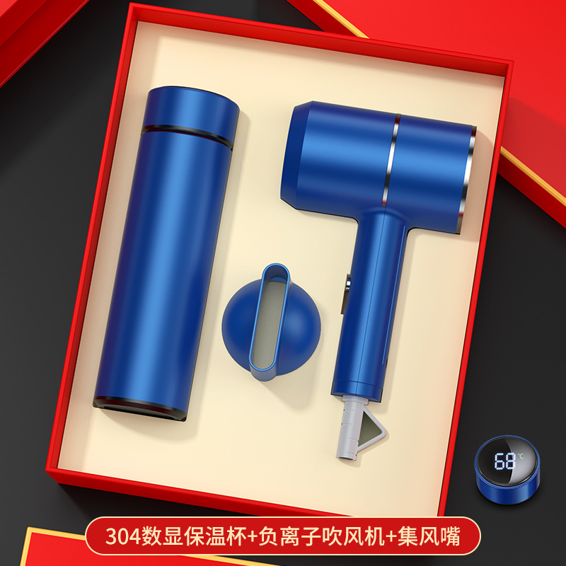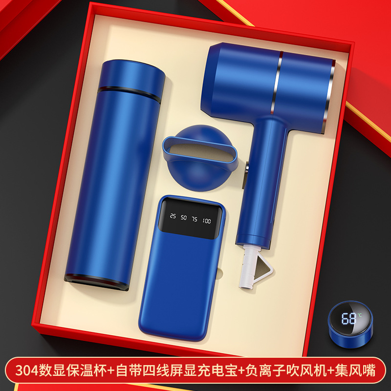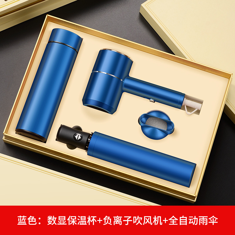 blue digital display cup + hair dryer + automatic umbrella/gift box