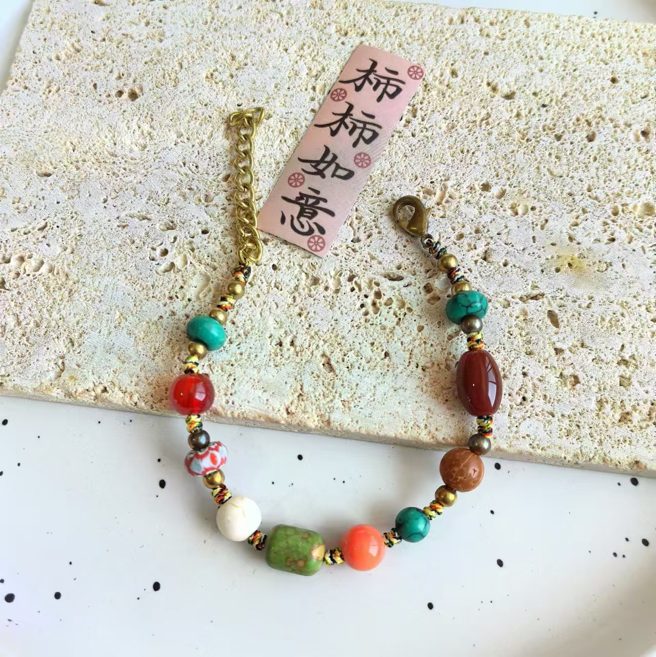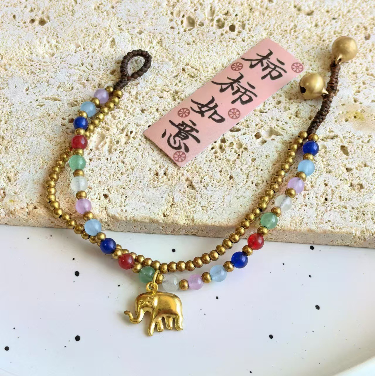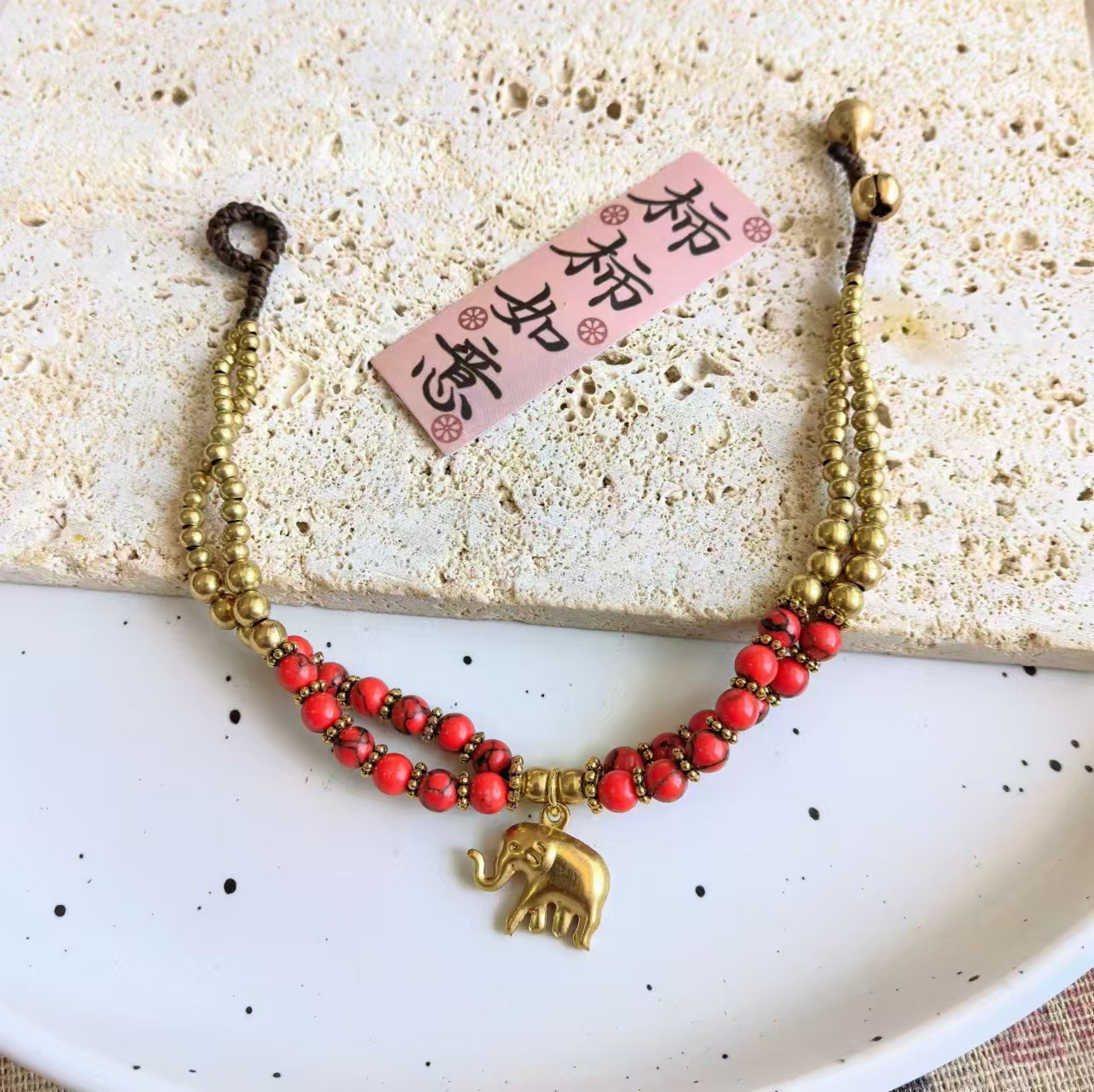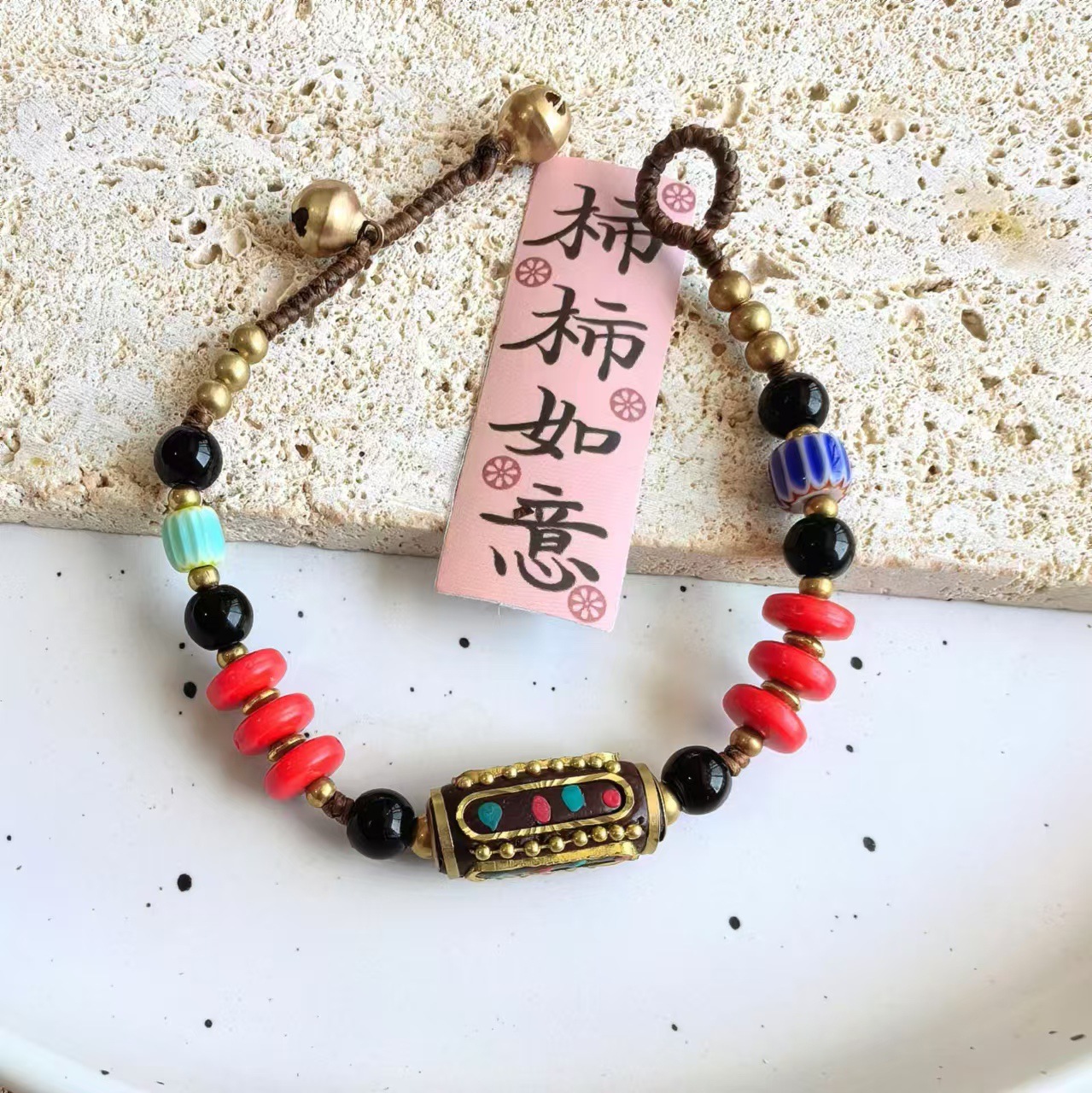 Material: Nepalese handcrafted copper beads, turquoise, copper beads, alloy, Thai wax thread, copper bells, natural stones.