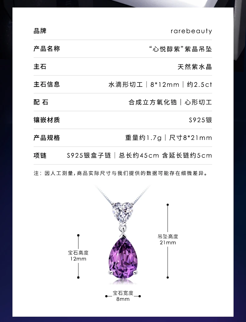 | [2.5 karat] amethyst pendant + gift box gift bag | CN¥ 790.56 | 99999 piece available |