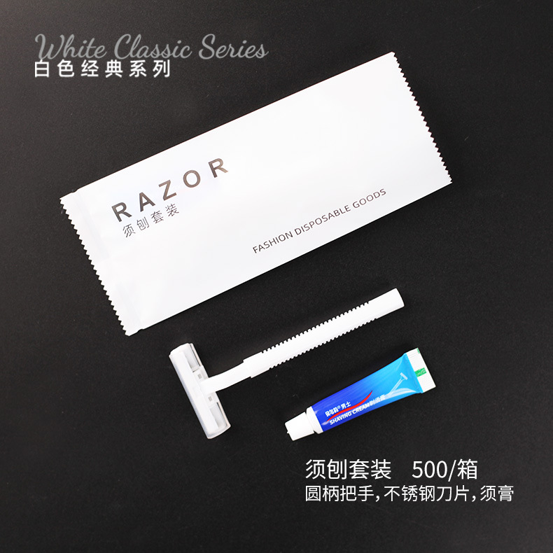 shaving set (white round straight handle shaver +5g cream)