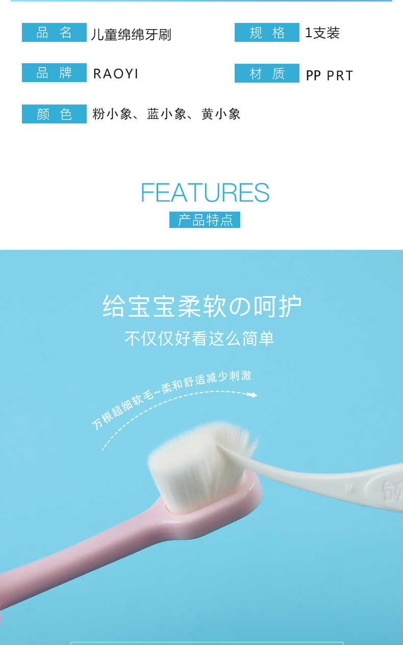 children's elephant blue single toothbrush