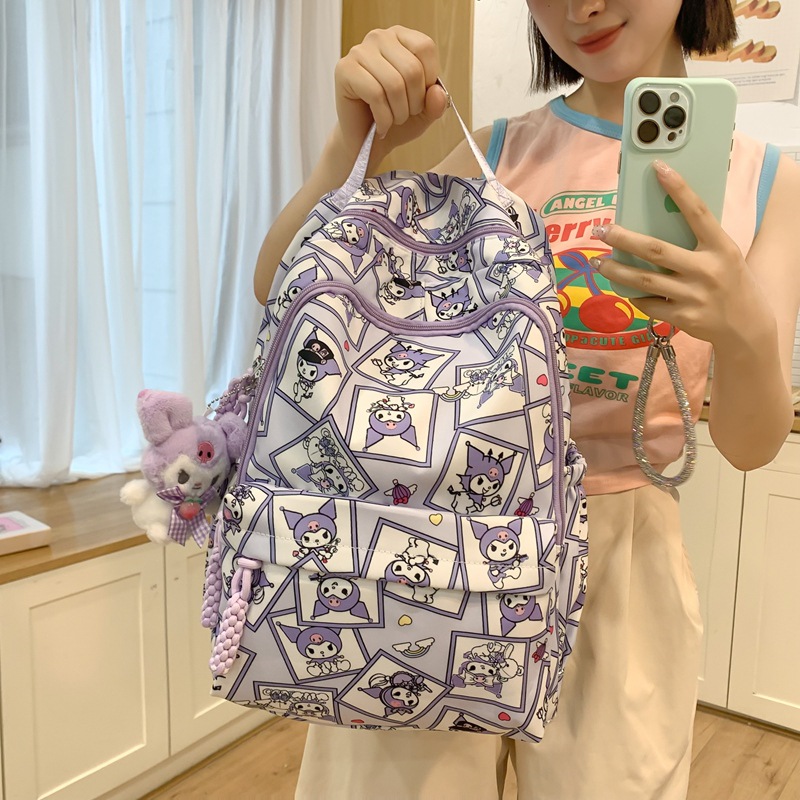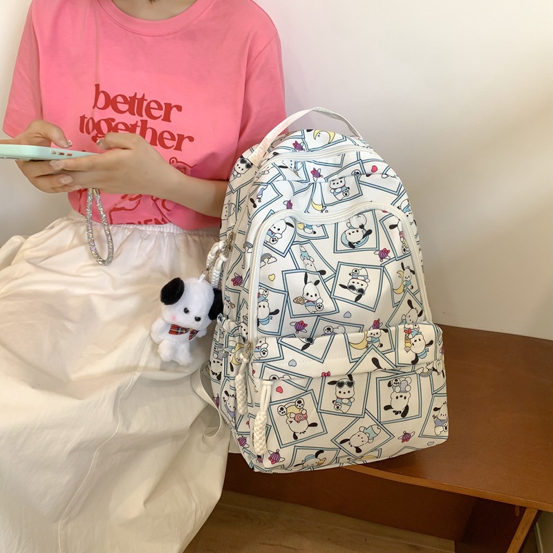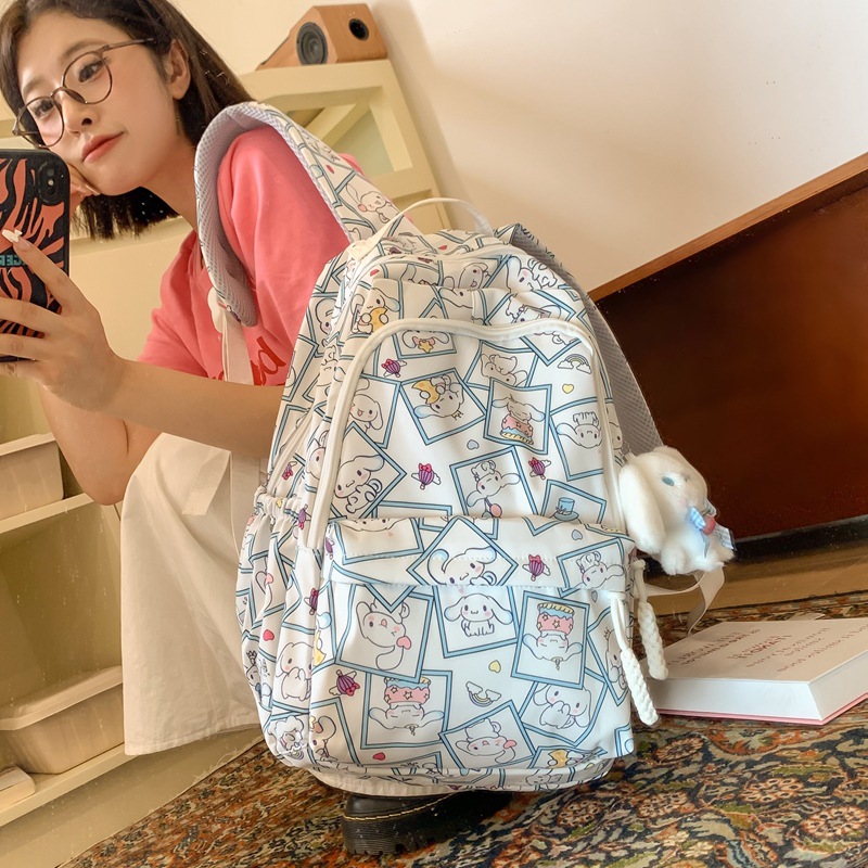girl backpack ins fun checkered cute cartoon bag printed female student campus schoolbag