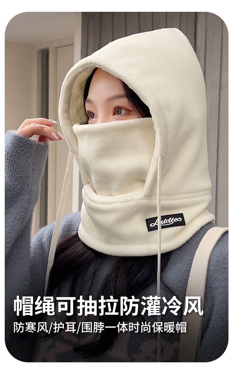 fleece-lined scarf integrated with hat -- beige