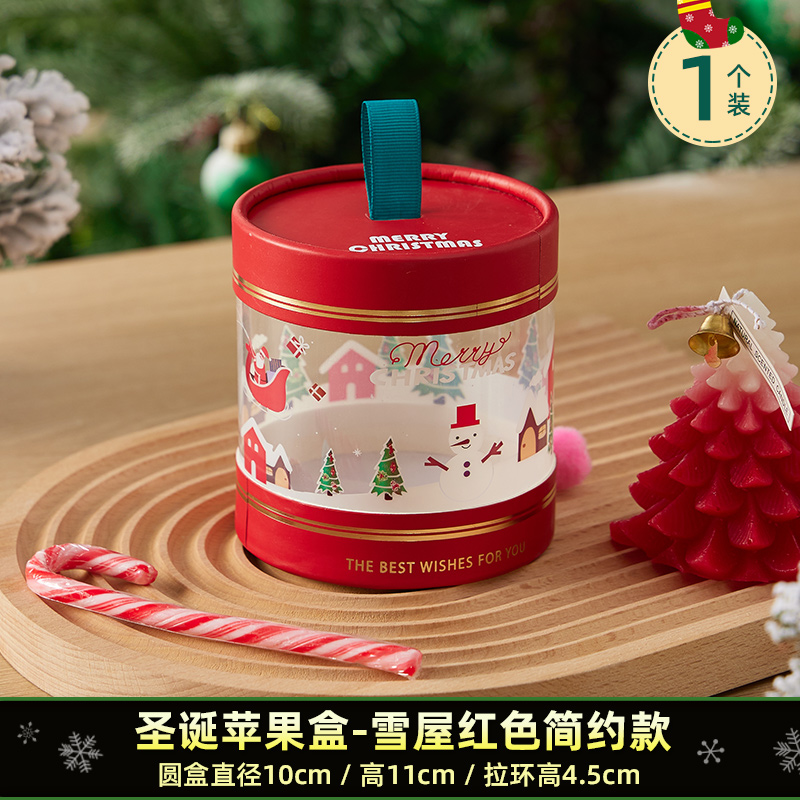 christmas apple box-snow house red simple