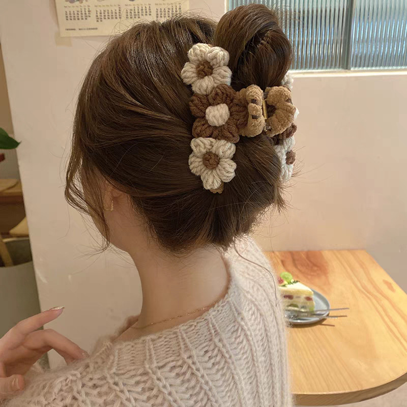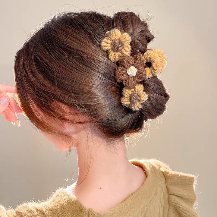 8# light brown plush woven three flowers hair claw