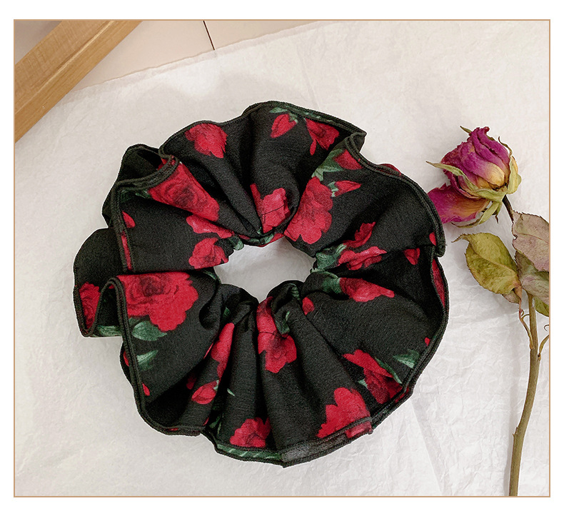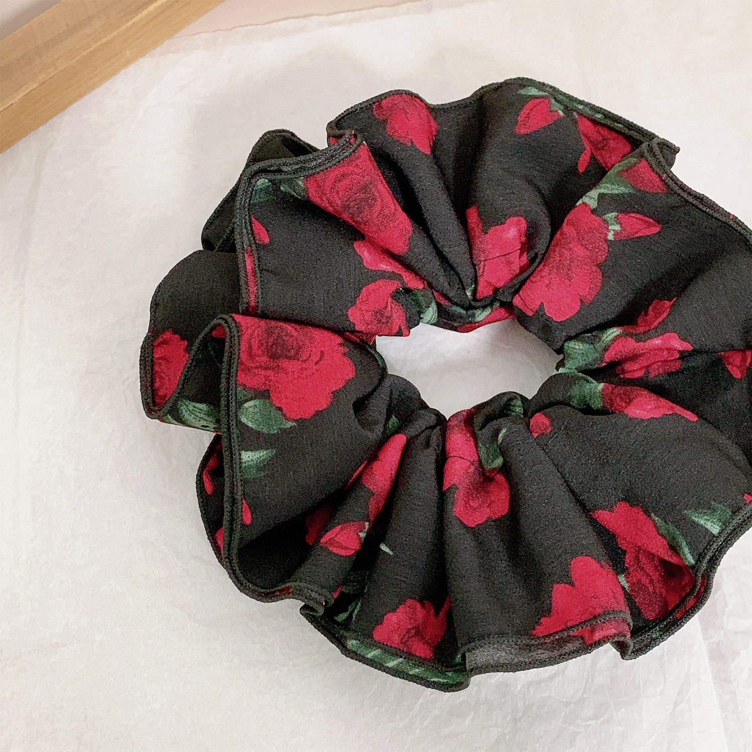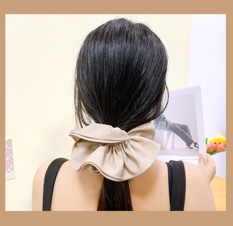 oversized pleated double-layer hair ring-black