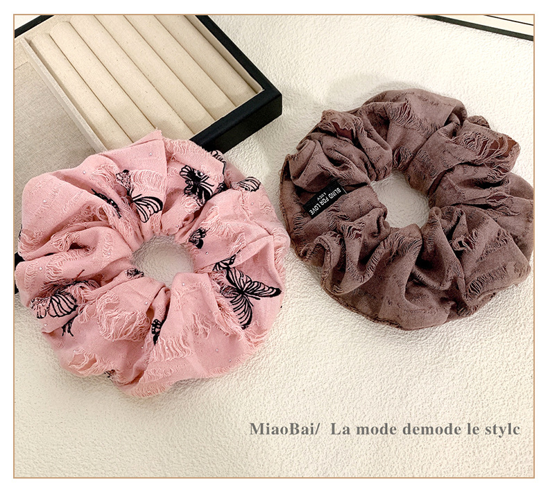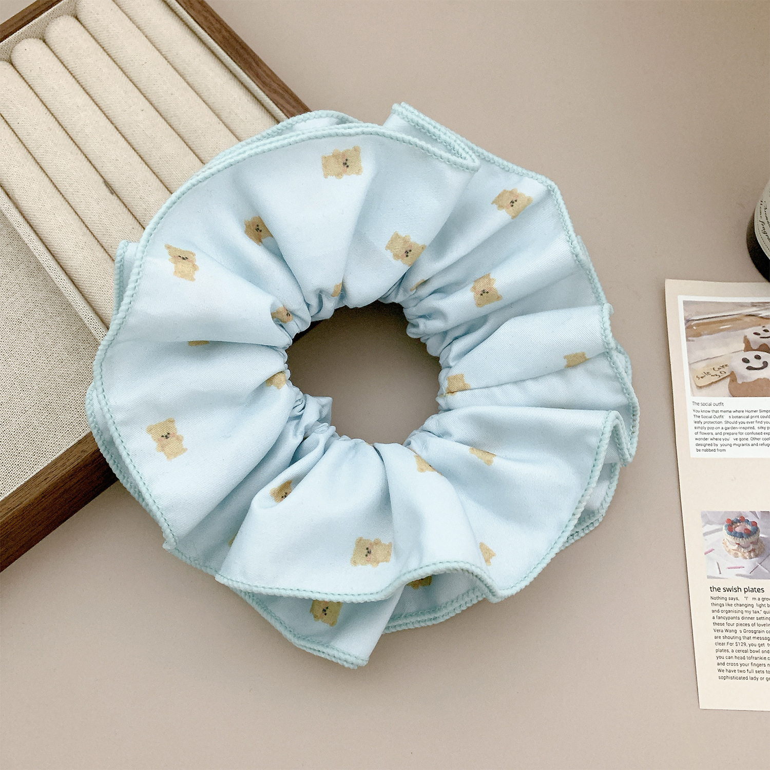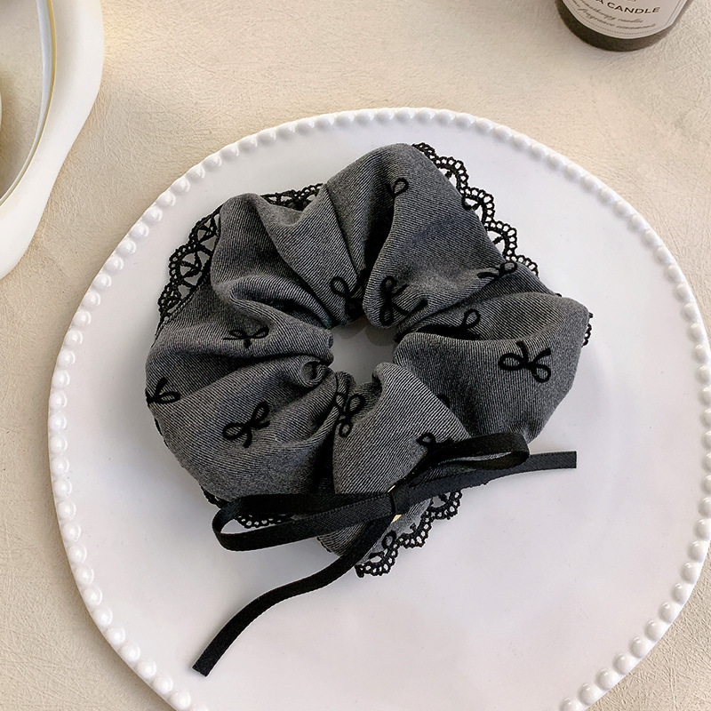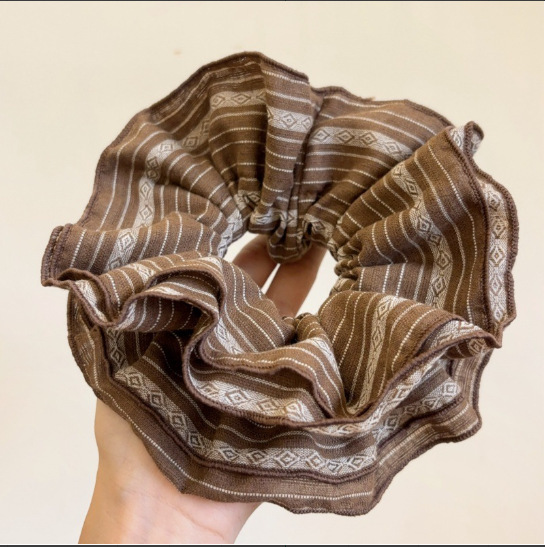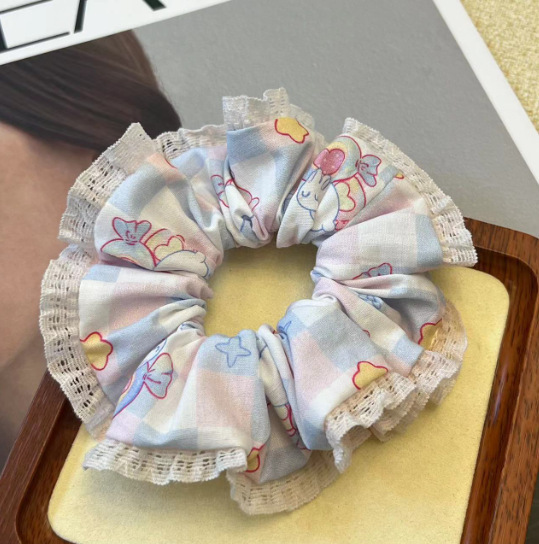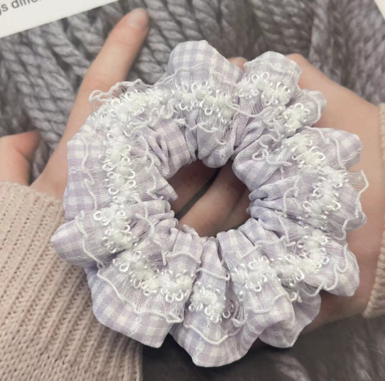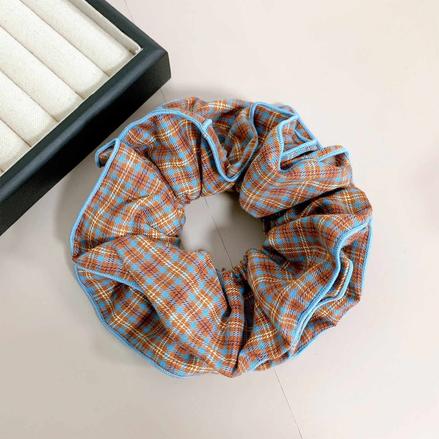 light coffee lace edge-blue orange plaid puff hair ring