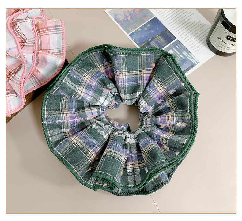 green plaid large intestine hair ring-large size