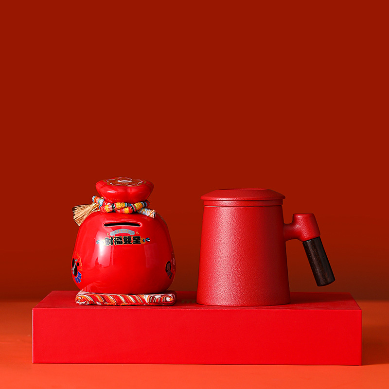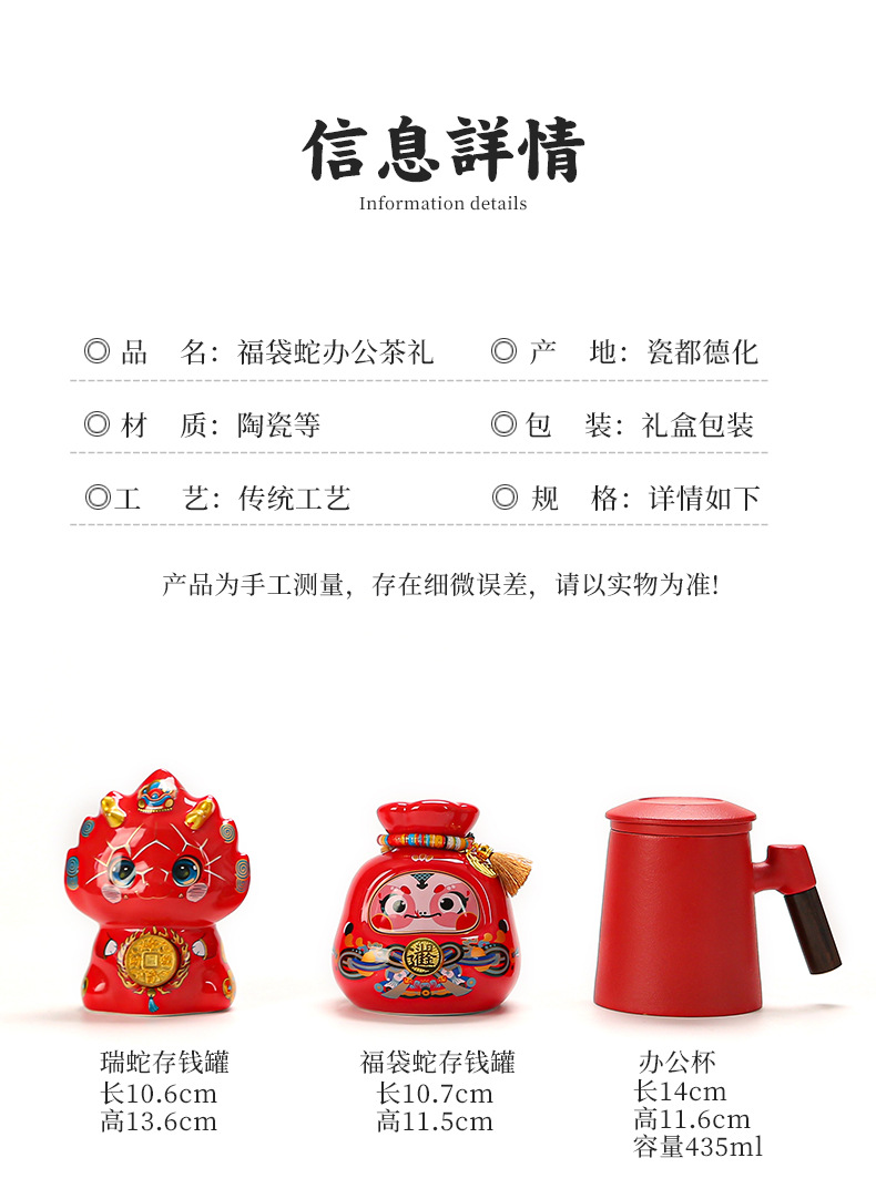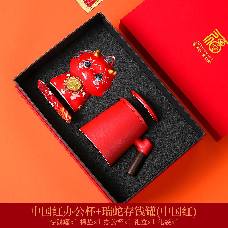 chinese red office cup + bai rui snake coin bank [gift suit]]