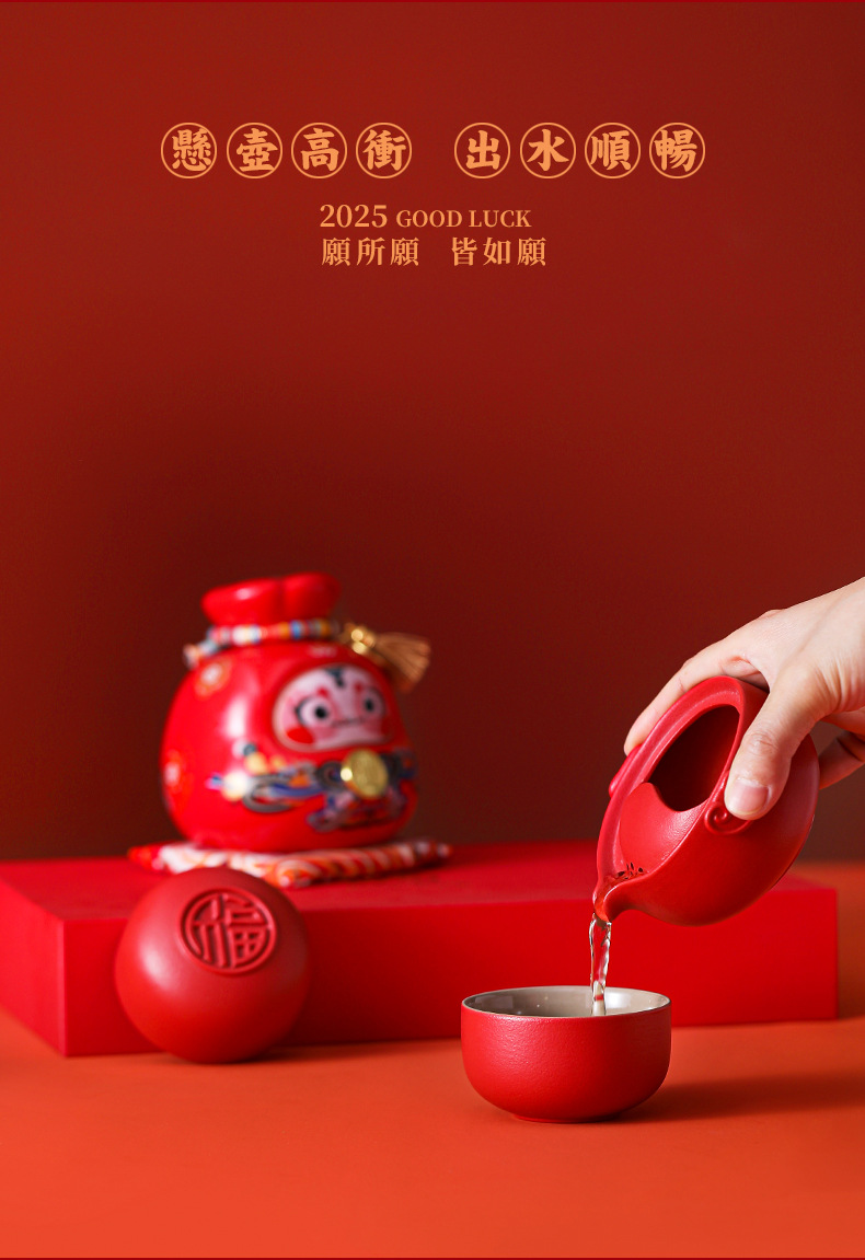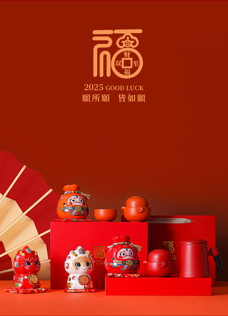 chinese red tea set + red blessing bag snake coin bank [gift suit]]