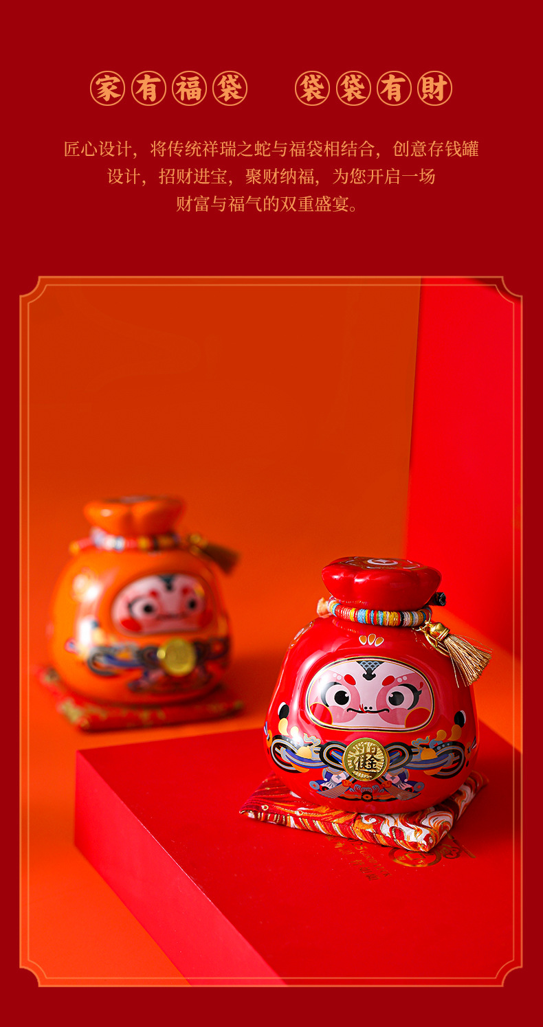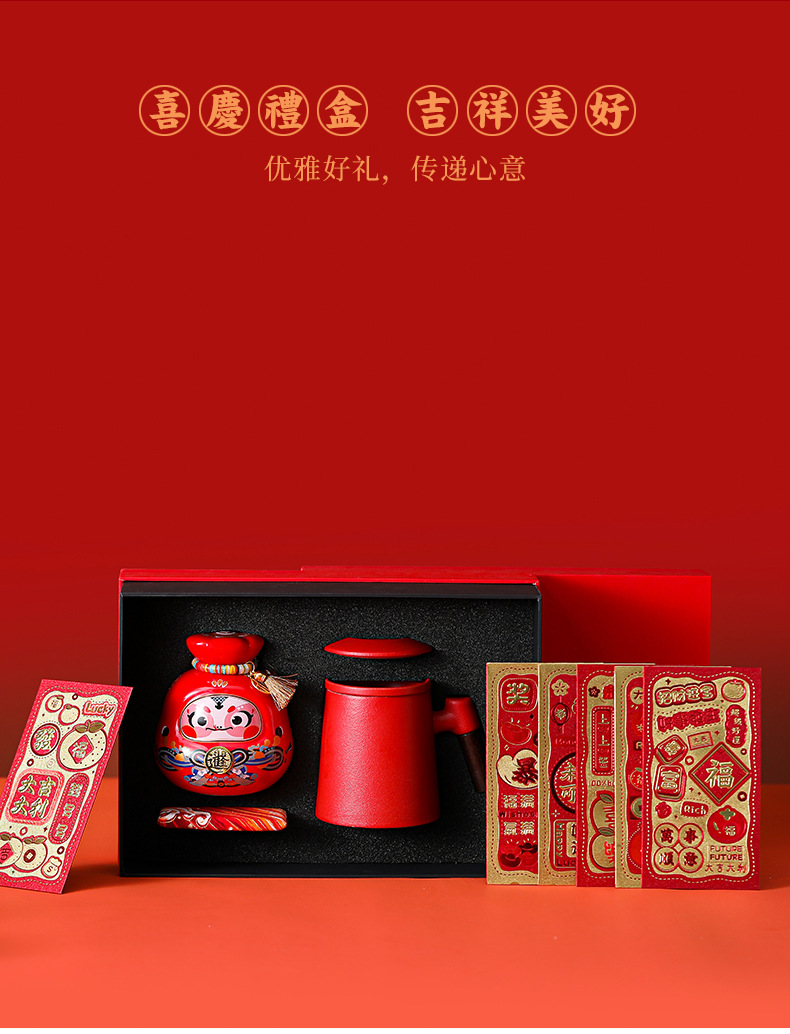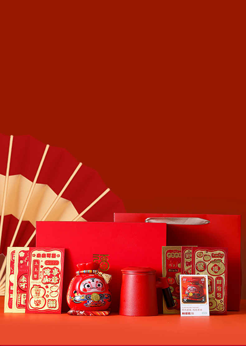 chinese red office cup + red blessing bag snake coin bank [gift suit]]