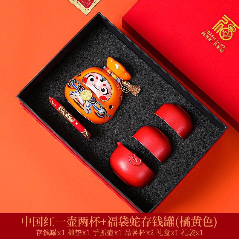 chinese red tea set + orange lucky bag snake coin bank [gift suit]]