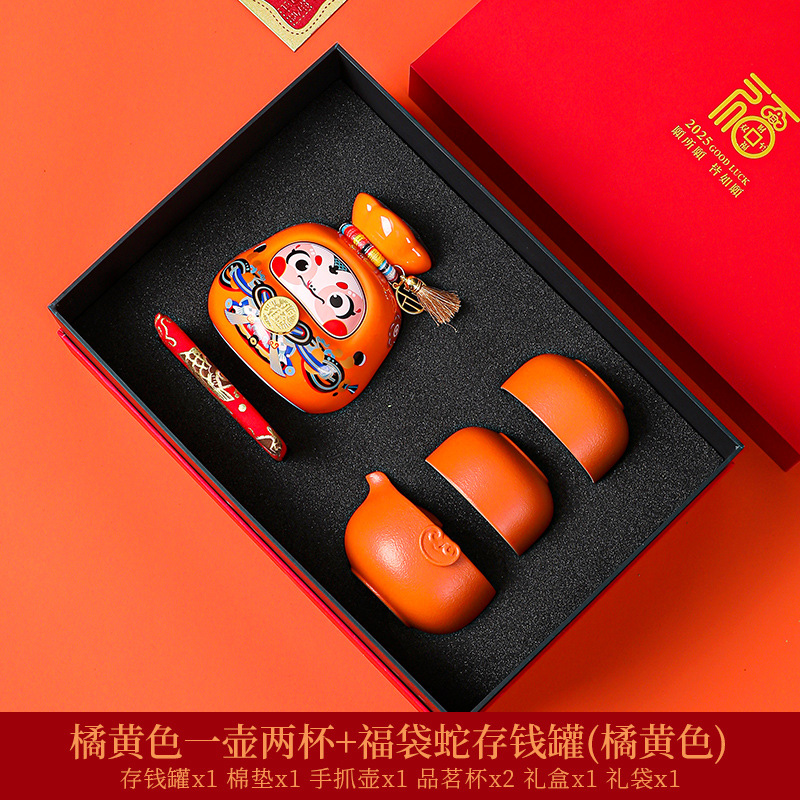 orange tea set + orange lucky bag snake coin bank [gift suit]]