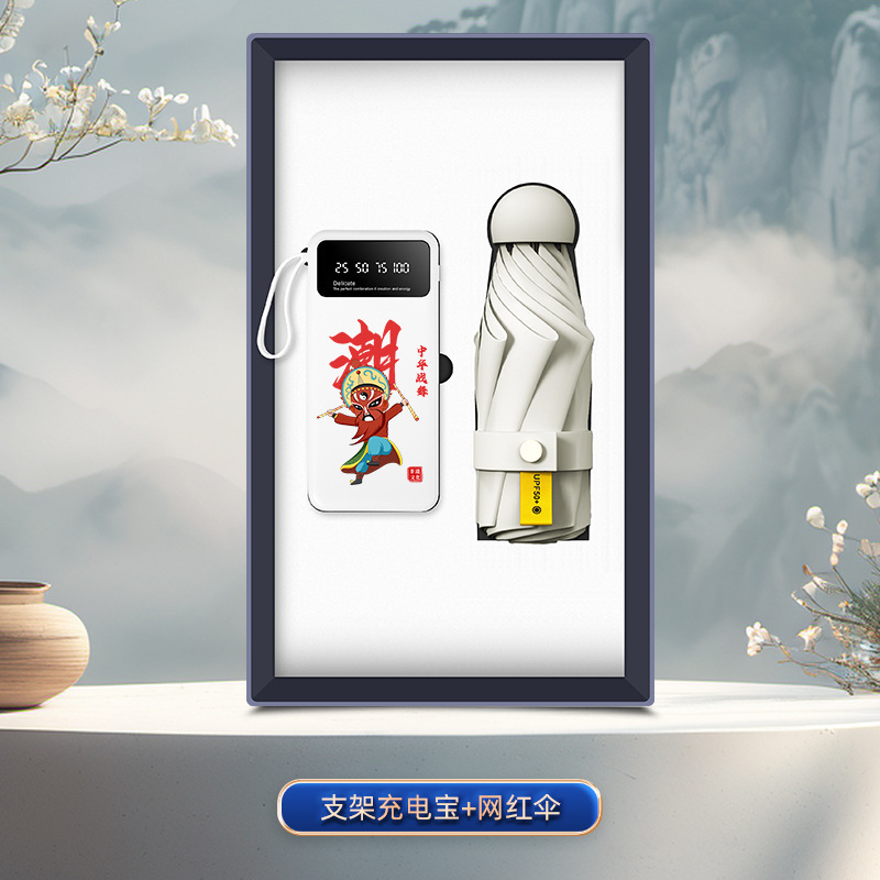 [english song and dance edition] 3c bracket power bank + internet sensation umbrella/white