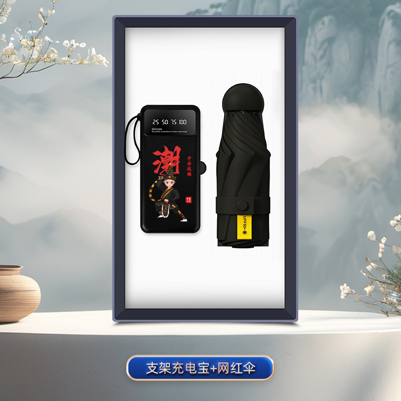 [english song and dance edition] 3c bracket power bank + internet sensation umbrella/black