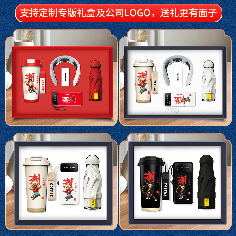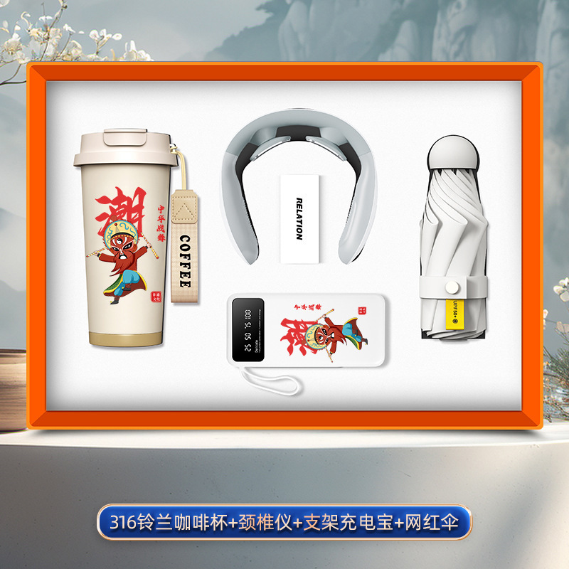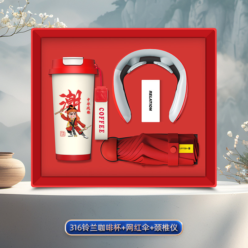 [english song and dance edition] linglan cup + neck massager + 3c bracket power bank + internet sensation umbrella/red