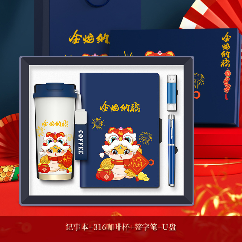 [gold snake nafu special edition] linglan cup + notebook + signature pen + u disk/blue
